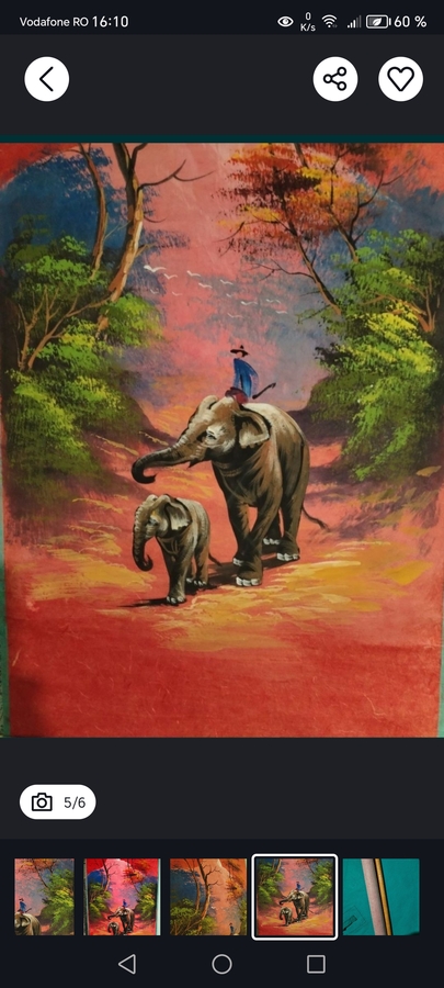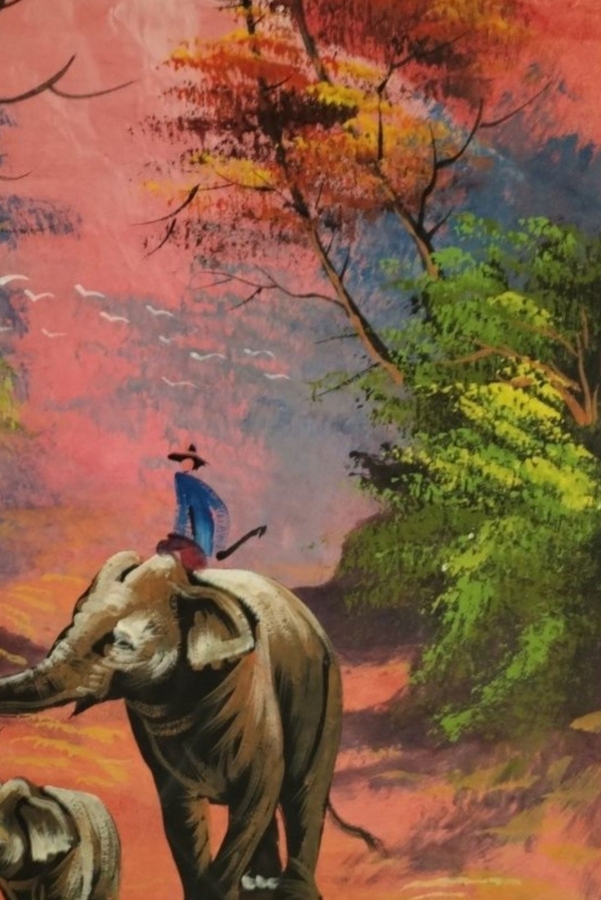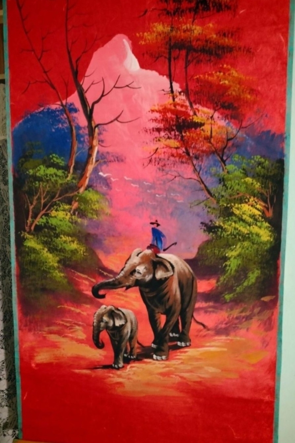 Pictura in acrilic unicat din Cambodgia, pe papirus decorativ sintetic (celuloza presata cu adaos de fibre sintetice).