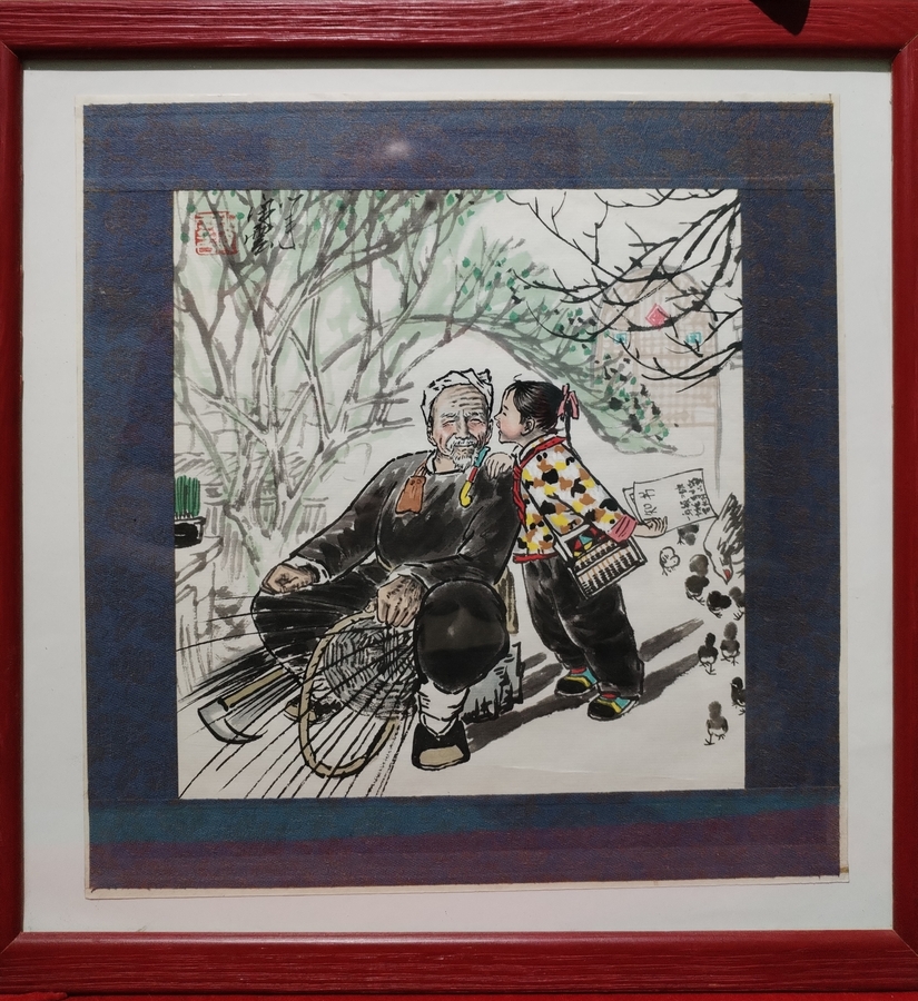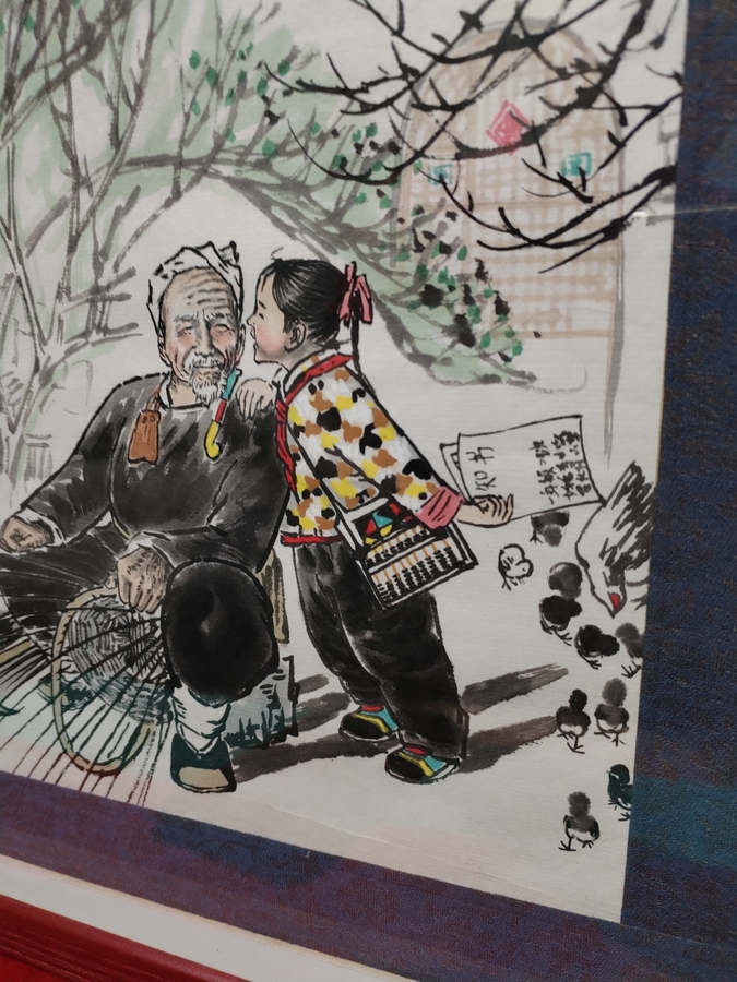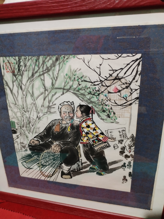Pictura chinezeasca autentica, cu sigiliu si semnatura, intitulata Soapte