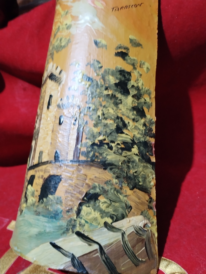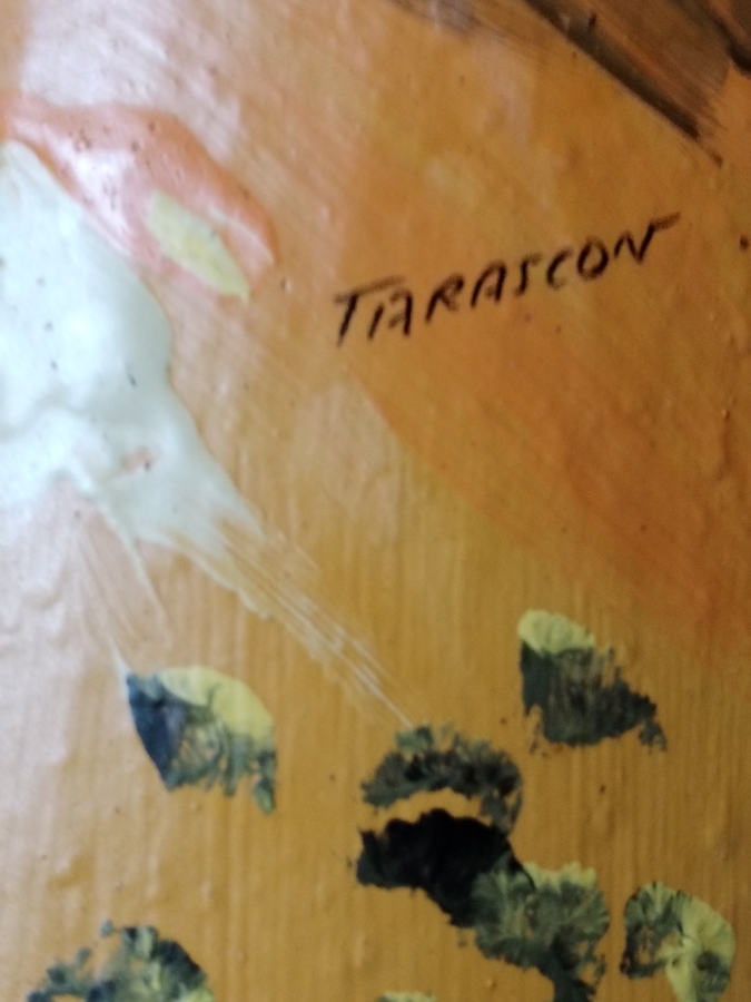 Pictura franceza realizata manual in Tarascon, pe tigla de epoca. Dimensiuni 23x15x5 cm.