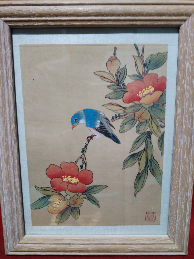 Pictura veche chinezeasca pe matase, cu sigiliu