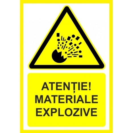Vand Placuta atentie materiale explozive la un pret foarte avantajos! Placuta atentie materiale explozive Va putem oferi si alte dimensiuni, materiale sau modele separat la cerere. Noua modalitate de imprimare UV pentru semne si indicatoare este cea mai recenta tehnologie UV. Aceasta tehnica este mult mai eficienta decat o tehnica obisnuita de imprimare digitala. Atat calitatea sa net superioara, cat si versatilitatea sa la imprimarea diferitelor produse sunt foarte mari si largi O imprimare UV consta intr-o tehnica de imprimare prin care cerneala este aplicata pe un material sau obiect care urmeaza sa fie imprimat, care este apoi uscata instantaneu de un emitator de raze ultraviolete. Multe tipuri de compusi sunt folosite pentru a acoperi intreaga suprafata imprimata, inclusiv carbonat de calciu si caolinit. Aceasta imprimare UV este o metoda de imprimare digitala cu o noua tehnica care usuca cerneala. Poate fi folosit pe o gama larga de materiale, astfel incat poate imprima pe plastic, metal, hartie, carton, placi ceramice, sticla, lemn si multe altele. Disponibil: - Autocolant PVC - forex industrial - Dibond din aluminiu. - www.prevenirea.ro Telefon : 0724 306 714