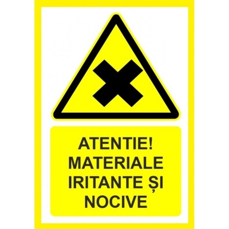 Vand Placuta atentie materiale iritante si nocive la un pret foarte avantajos! Placuta atentie materiale iritante si nocive Va putem oferi si alte dimensiuni, materiale sau modele separat la cerere. Noua modalitate de imprimare UV pentru semne si indicatoare este cea mai recenta tehnologie UV. Aceasta tehnica este mult mai eficienta decat o tehnica obisnuita de imprimare digitala. Atat calitatea sa net superioara, cat si versatilitatea sa la imprimarea diferitelor produse sunt foarte mari si largi O imprimare UV consta intr-o tehnica de imprimare prin care cerneala este aplicata pe un material sau obiect care urmeaza sa fie imprimat, care este apoi uscata instantaneu de un emitator de raze ultraviolete. Multe tipuri de compusi sunt folosite pentru a acoperi intreaga suprafata imprimata, inclusiv carbonat de calciu si caolinit. Aceasta imprimare UV este o metoda de imprimare digitala cu o noua tehnica care usuca cerneala. Poate fi folosit pe o gama larga de materiale, astfel incat poate imprima pe plastic, metal, hartie, carton, placi ceramice, sticla, lemn si multe altele. Disponibil: - Autocolant PVC - forex industrial - Dibond din aluminiu. - www.prevenirea.ro Telefon : 0724 306 714