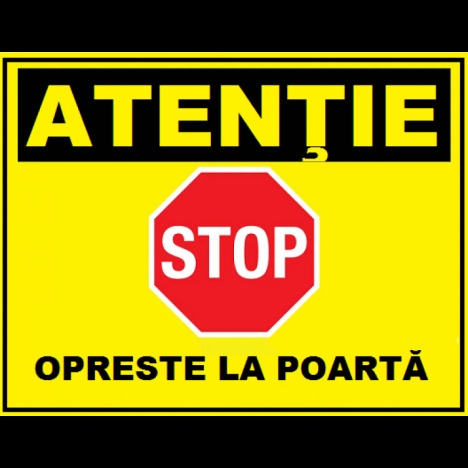 Vand Placuta atentie stop opreste la poarta la un pret foarte avantajos! Placuta atentie stop opreste la poarta Va putem oferi si alte dimensiuni, materiale sau modele separat la cerere. Noua modalitate de imprimare UV pentru semne si indicatoare este cea mai recenta tehnologie UV. Aceasta tehnica este mult mai eficienta decat o tehnica obisnuita de imprimare digitala. Atat calitatea sa net superioara, cat si versatilitatea sa la imprimarea diferitelor produse sunt foarte mari si largi O imprimare UV consta intr-o tehnica de imprimare prin care cerneala este aplicata pe un material sau obiect care urmeaza sa fie imprimat, care este apoi uscata instantaneu de un emitator de raze ultraviolete. Multe tipuri de compusi sunt folosite pentru a acoperi intreaga suprafata imprimata, inclusiv carbonat de calciu si caolinit. Aceasta imprimare UV este o metoda de imprimare digitala cu o noua tehnica care usuca cerneala. Poate fi folosit pe o gama larga de materiale, astfel incat poate imprima pe plastic, metal, hartie, carton, placi ceramice, sticla, lemn si multe altele. Disponibil: - Autocolant PVC - forex industrial - Dibond din aluminiu. - www.prevenirea.ro Telefon : 0724 306 714