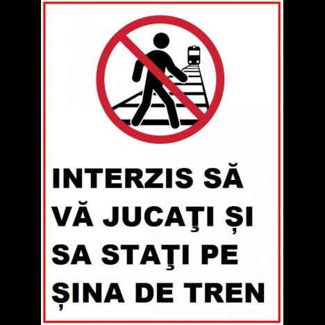 Vand Placuta interzis sa va jucati si sa stati pe sina de tren la un pret foarte avantajos! Placuta interzis sa va jucati si sa stati pe sina de tren Va putem oferi si alte dimensiuni, materiale sau modele separat la cerere. Noua modalitate de imprimare UV pentru semne si indicatoare este cea mai recenta tehnologie UV. Aceasta tehnica este mult mai eficienta decat o tehnica obisnuita de imprimare digitala. Atat calitatea sa net superioara, cat si versatilitatea sa la imprimarea diferitelor produse sunt foarte mari si largi O imprimare UV consta intr-o tehnica de imprimare prin care cerneala este aplicata pe un material sau obiect care urmeaza sa fie imprimat, care este apoi uscata instantaneu de un emitator de raze ultraviolete. Multe tipuri de compusi sunt folosite pentru a acoperi intreaga suprafata imprimata, inclusiv carbonat de calciu si caolinit. Aceasta imprimare UV este o metoda de imprimare digitala cu o noua tehnica care usuca cerneala. Poate fi folosit pe o gama larga de materiale, astfel incat poate imprima pe plastic, metal, hartie, carton, placi ceramice, sticla, lemn si multe altele. Disponibil: - Autocolant PVC - forex industrial - Dibond din aluminiu. - www.prevenirea.ro Telefon : 0724 306 714