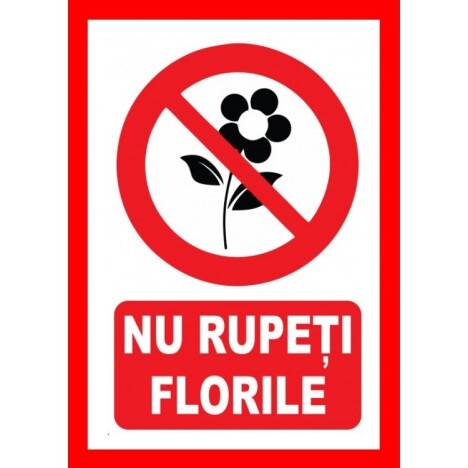 Vand Placuta nu rupeti florile la un pret foarte avantajos! Placuta nu rupeti florile Va putem oferi si alte dimensiuni, materiale sau modele separat la cerere. Noua modalitate de imprimare UV pentru semne si indicatoare este cea mai recenta tehnologie UV. Aceasta tehnica este mult mai eficienta decat o tehnica obisnuita de imprimare digitala. Atat calitatea sa net superioara, cat si versatilitatea sa la imprimarea diferitelor produse sunt foarte mari si largi O imprimare UV consta intr-o tehnica de imprimare prin care cerneala este aplicata pe un material sau obiect care urmeaza sa fie imprimat, care este apoi uscata instantaneu de un emitator de raze ultraviolete. Multe tipuri de compusi sunt folosite pentru a acoperi intreaga suprafata imprimata, inclusiv carbonat de calciu si caolinit. Aceasta imprimare UV este o metoda de imprimare digitala cu o noua tehnica care usuca cerneala. Poate fi folosit pe o gama larga de materiale, astfel incat poate imprima pe plastic, metal, hartie, carton, placi ceramice, sticla, lemn si multe altele. Disponibil: - Autocolant PVC - forex industrial - Dibond din aluminiu. - www.prevenirea.ro Telefon : 0724 306 714