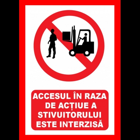 Placuta pentru accesul in raza de actiune a stivuitorului este interzisa
