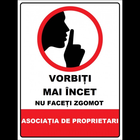 Vand Placuta pentru asociatia de proprietari vorbiti mai incet la un pret foarte avantajos! Placuta pentru asociatia de proprietari vorbiti mai incet Va putem oferi si alte dimensiuni, materiale sau modele separat la cerere. Noua modalitate de imprimare UV pentru semne si indicatoare este cea mai recenta tehnologie UV. Aceasta tehnica este mult mai eficienta decat o tehnica obisnuita de imprimare digitala. Atat calitatea sa net superioara, cat si versatilitatea sa la imprimarea diferitelor produse sunt foarte mari si largi O imprimare UV consta intr-o tehnica de imprimare prin care cerneala este aplicata pe un material sau obiect care urmeaza sa fie imprimat, care este apoi uscata instantaneu de un emitator de raze ultraviolete. Multe tipuri de compusi sunt folosite pentru a acoperi intreaga suprafata imprimata, inclusiv carbonat de calciu si caolinit. Aceasta imprimare UV este o metoda de imprimare digitala cu o noua tehnica care usuca cerneala. Poate fi folosit pe o gama larga de materiale, astfel incat poate imprima pe plastic, metal, hartie, carton, placi ceramice, sticla, lemn si multe altele. Disponibil: - Autocolant PVC - forex industrial - Dibond din aluminiu. - www.prevenirea.ro Telefon : 0724 306 714