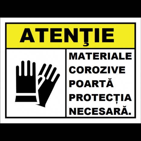 Vand Placuta pentru materiale corozive poarta protectia necesara la un pret foarte avantajos! Placuta pentru materiale corozive poarta protectia necesara Va putem oferi si alte dimensiuni, materiale sau modele separat la cerere. Noua modalitate de imprimare UV pentru semne si indicatoare este cea mai recenta tehnologie UV. Aceasta tehnica este mult mai eficienta decat o tehnica obisnuita de imprimare digitala. Atat calitatea sa net superioara, cat si versatilitatea sa la imprimarea diferitelor produse sunt foarte mari si largi O imprimare UV consta intr-o tehnica de imprimare prin care cerneala este aplicata pe un material sau obiect care urmeaza sa fie imprimat, care este apoi uscata instantaneu de un emitator de raze ultraviolete. Multe tipuri de compusi sunt folosite pentru a acoperi intreaga suprafata imprimata, inclusiv carbonat de calciu si caolinit. Aceasta imprimare UV este o metoda de imprimare digitala cu o noua tehnica care usuca cerneala. Poate fi folosit pe o gama larga de materiale, astfel incat poate imprima pe plastic, metal, hartie, carton, placi ceramice, sticla, lemn si multe altele. Disponibil: - Autocolant PVC - forex industrial - Dibond din aluminiu. - www.prevenirea.ro Telefon : 0724 306 714