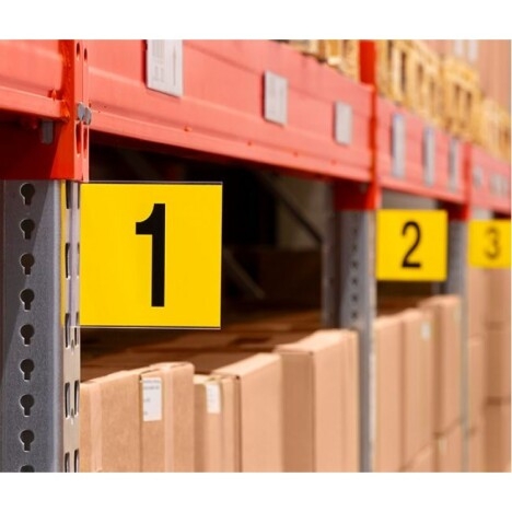 Vand Placuta pentru rafturi cu culoar inclinate la un pret foarte avantajos! Placuta pentru rafturi cu culoar inclinate Placutele noastre de rafturi si culoar inclinate sunt ideale pentru marcarea stalpilor de sprijin. Fixarea se face cu banda autoadeziva puternic adeziva. Alternativ, la cerere sunt disponibile gauri de suspendare. Etichetarea clara pe rafturi asigura o mai mare eficienta si ordine - in special in depozitele mari. placutele pentru rafturi si culoar sunt tiparite de noi cu inscriptia dumneavoastra individuala. Anumite completari, cum ar fi sagetile, sunt, de asemenea, disponibile la cerere. In functie de dorintele dumneavoastra, putem imprima semnele pe una sau pe ambele fete. TOATE FORMATELE SI CULORI Placutele noastre sunt disponibile in formatele DIN A6, A5, A4, precum si in A3 vertical si transversal. In versiunea standard folosim o litere neagra pe un fundal galben. La cerere sunt disponibile si alte culori de litere sau de fundal. Indicatoarele pentru rafturi si culoar sunt realizate dintr-un plastic de inalta calitate si foarte rezistent la uzura. Pentru cantitati mai mari de comanda, va rugam sa trimiteti o lista Excel la office@comenzi.ro Dimensiune 150x150 cm