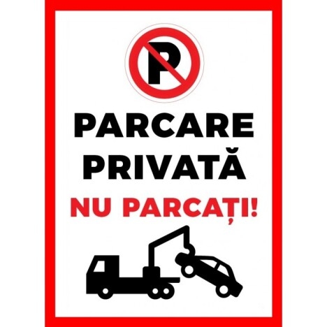 Vand Placute de interzicere parcare privata nu parcati la un pret foarte avantajos! Placute de interzicere parcare privata nu parcati Va putem oferi si alte dimensiuni, materiale sau modele separat la cerere. Noua modalitate de imprimare UV pentru semne si indicatoare este cea mai recenta tehnologie UV. Aceasta tehnica este mult mai eficienta decat o tehnica obisnuita de imprimare digitala. Atat calitatea sa net superioara, cat si versatilitatea sa la imprimarea diferitelor produse sunt foarte mari si largi O imprimare UV consta intr-o tehnica de imprimare prin care cerneala este aplicata pe un material sau obiect care urmeaza sa fie imprimat, care este apoi uscata instantaneu de un emitator de raze ultraviolete. Multe tipuri de compusi sunt folosite pentru a acoperi intreaga suprafata imprimata, inclusiv carbonat de calciu si caolinit. Aceasta imprimare UV este o metoda de imprimare digitala cu o noua tehnica care usuca cerneala. Poate fi folosit pe o gama larga de materiale, astfel incat poate imprima pe plastic, metal, hartie, carton, placi ceramice, sticla, lemn si multe altele. Disponibil: - Autocolant PVC - forex industrial - Dibond din aluminiu. - www.prevenirea.ro Telefon : 0724 306 714
