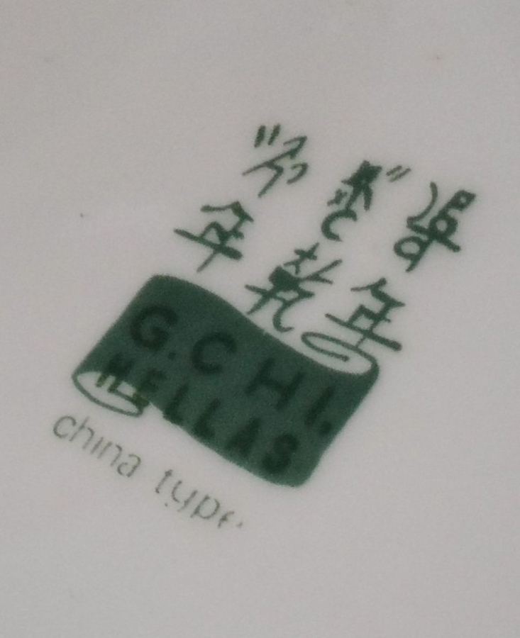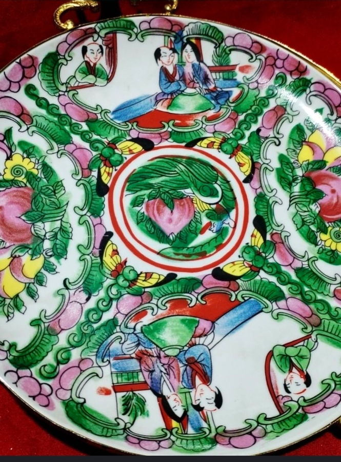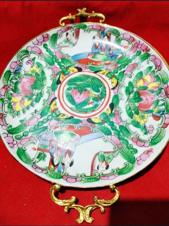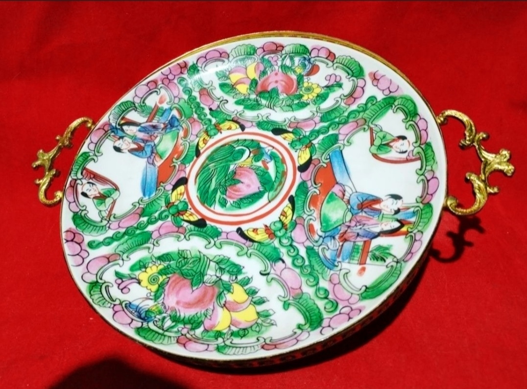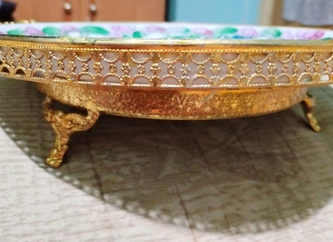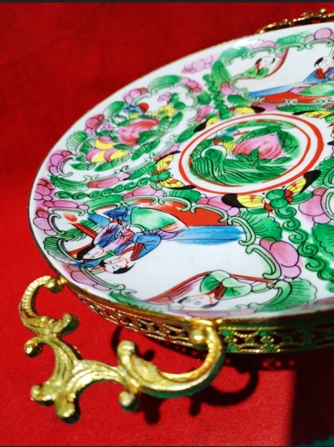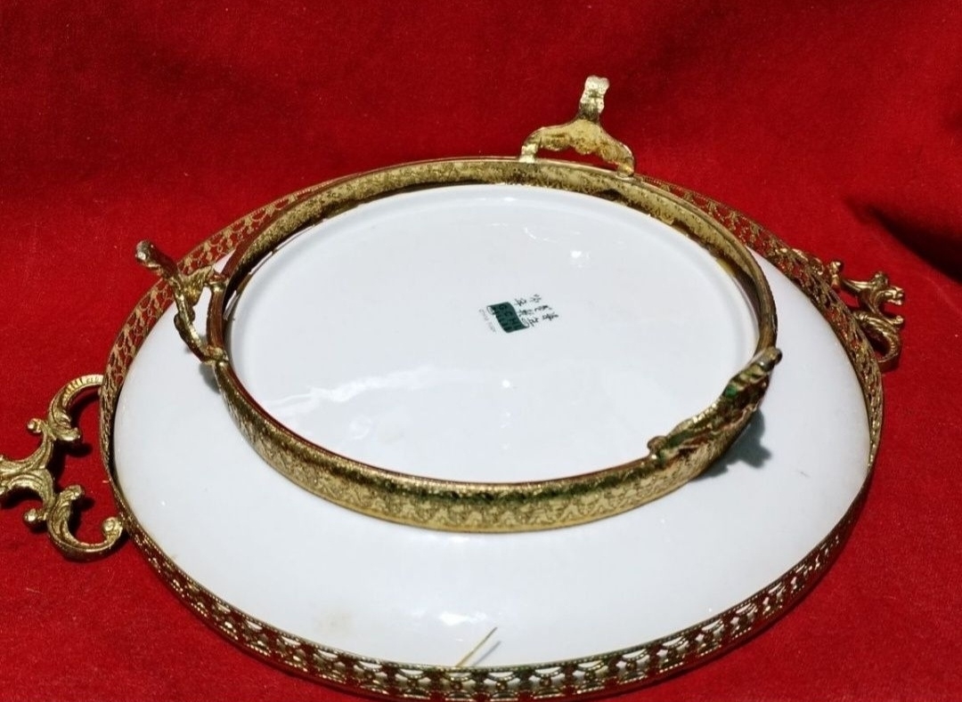 pictat manual, cu farfurie, cadru cu manere si trei picioare din alama.