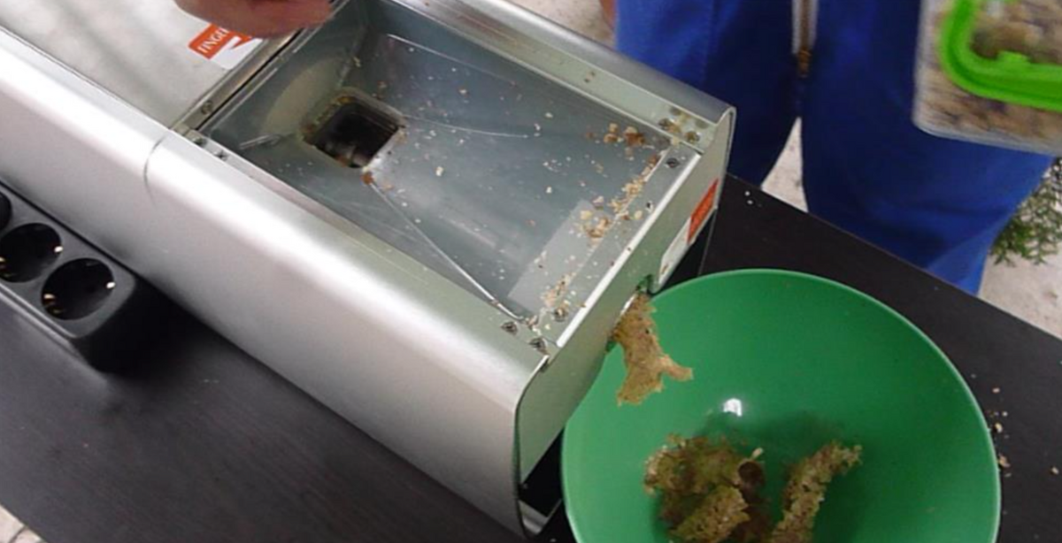 Presa ulei electrica - extractie din miez de nuca - maruntit in prealabil si fara coji. Masina este destinata uzului casnic. Necesara o desprafuire si selectare a materialului de presat - in caz contrar existenta nisipului si sau a elementelor dure (pietre, bucati de metal) duc la avarierea masinii.