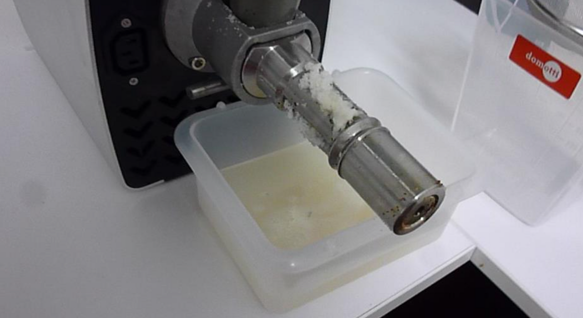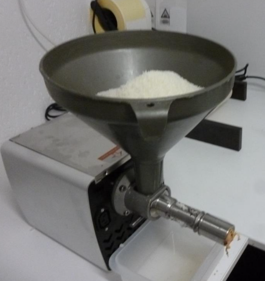 Presa ulei din cocos (fulgi/ razatura). Motor 220V, 0.2 Kw. Presa este universala. Extractia se poate realiza la cald sau la rece.