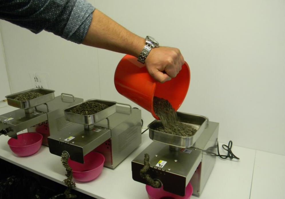 Masina estrage uleiul din seminte oleaginoase. Randamentul este functie de continutul de ulei din seminte.