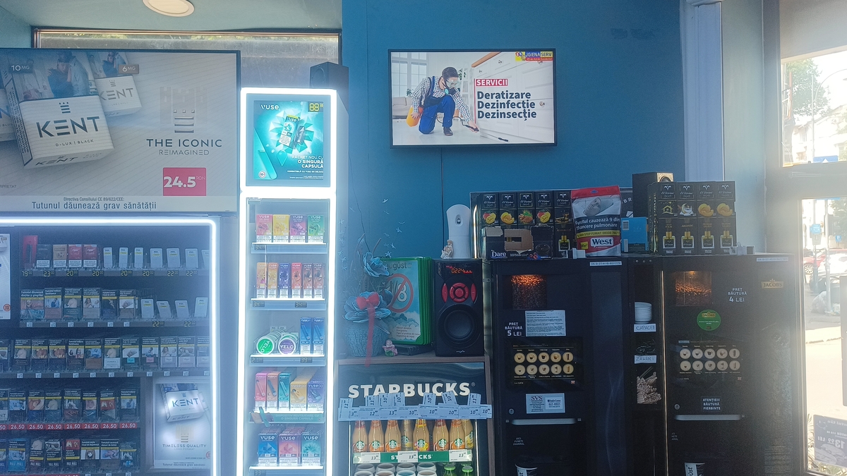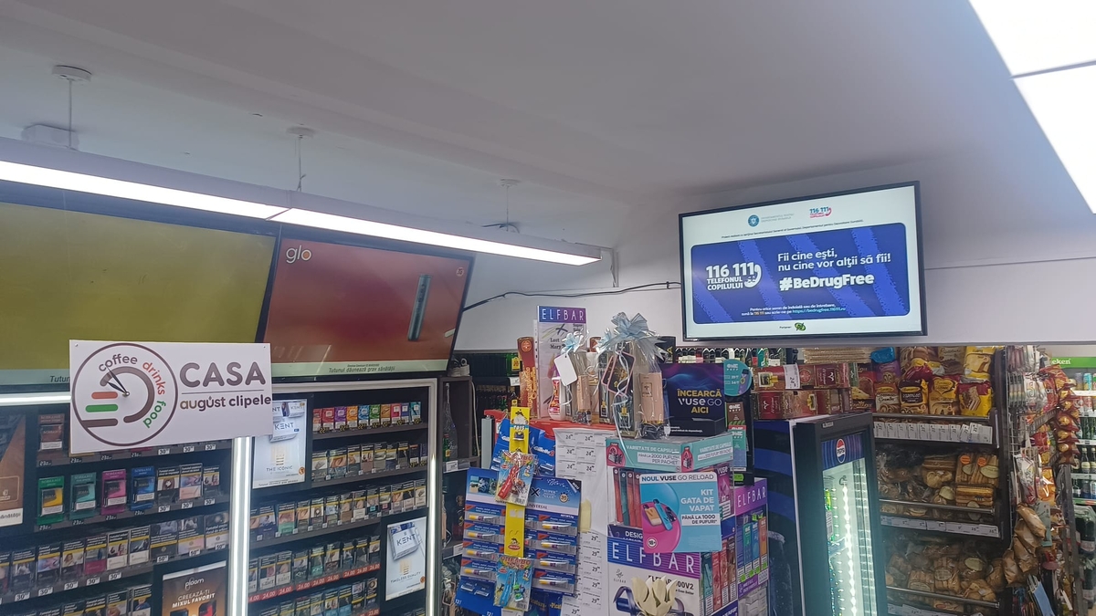 Promovare pe ecrane digitale intr-o retea de 10 magazine de proximitate, in Bucuresti. Trafic total de peste 6000 de persoane zilnic.
