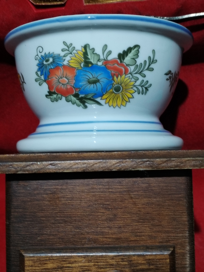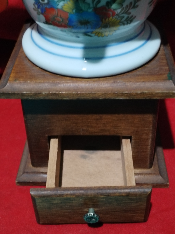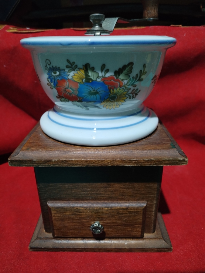 Rasnita de cafea franceza din portelan si lemn, anii 1980.