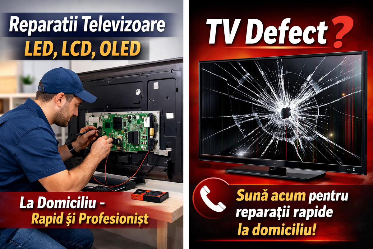 Oferim servicii complete de reparatii pentru televizoare LED, LCD si OLED, direct la domiciliu.