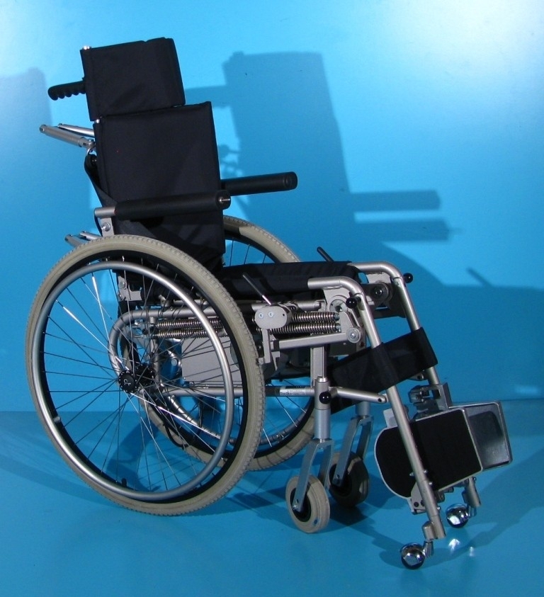Scaunul rulant cu verticalizare are schelet din otel, vopsite epoxy.