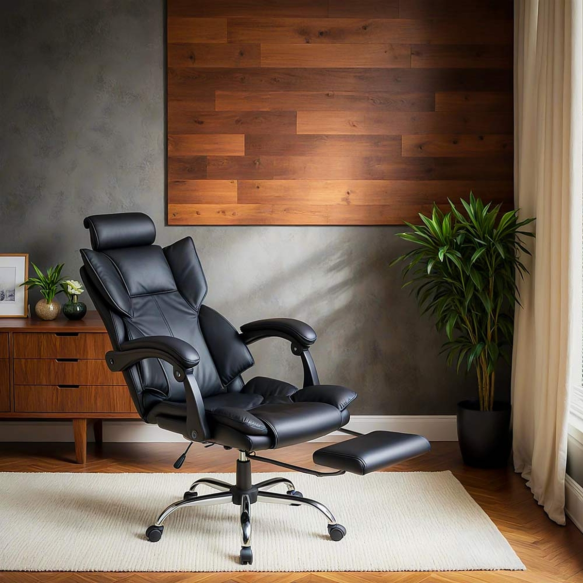Echipat cu o perna generoasa pentru zona cervicala si un suport extensibil pentru picioare, acest scaun ofera un confort exceptional, perfect pentru perioade lungi de munca.