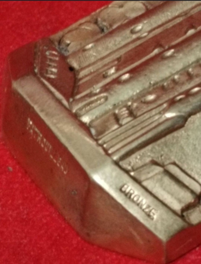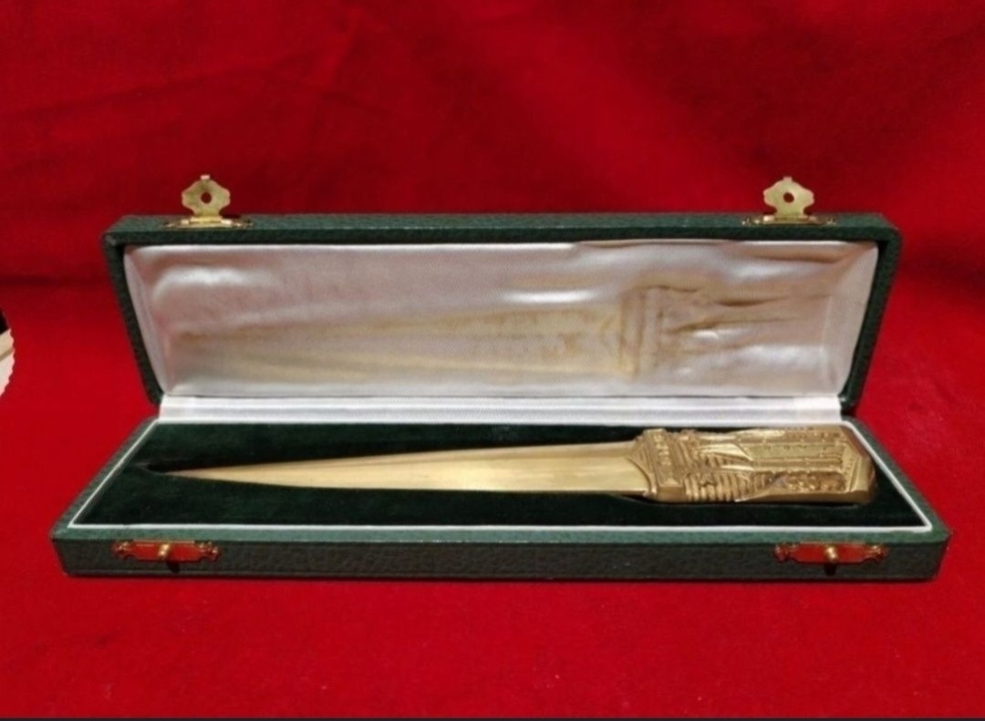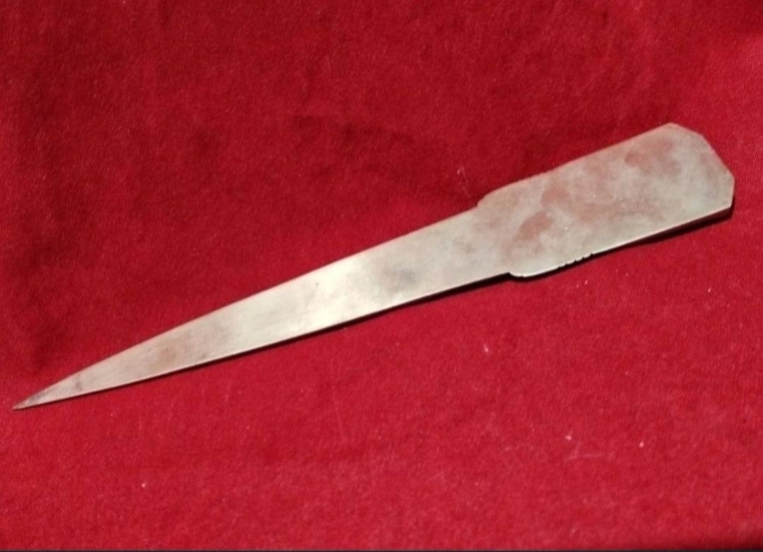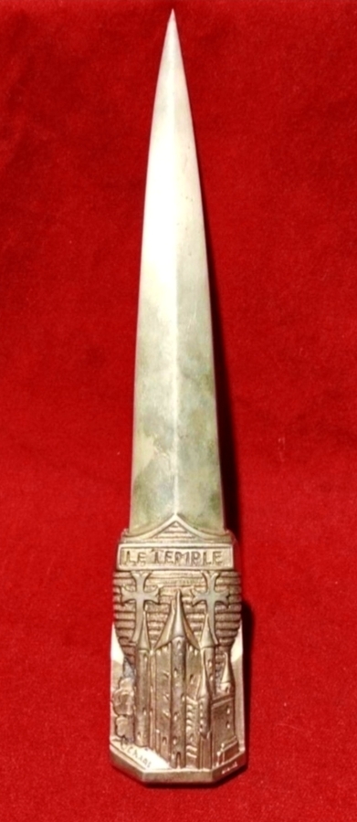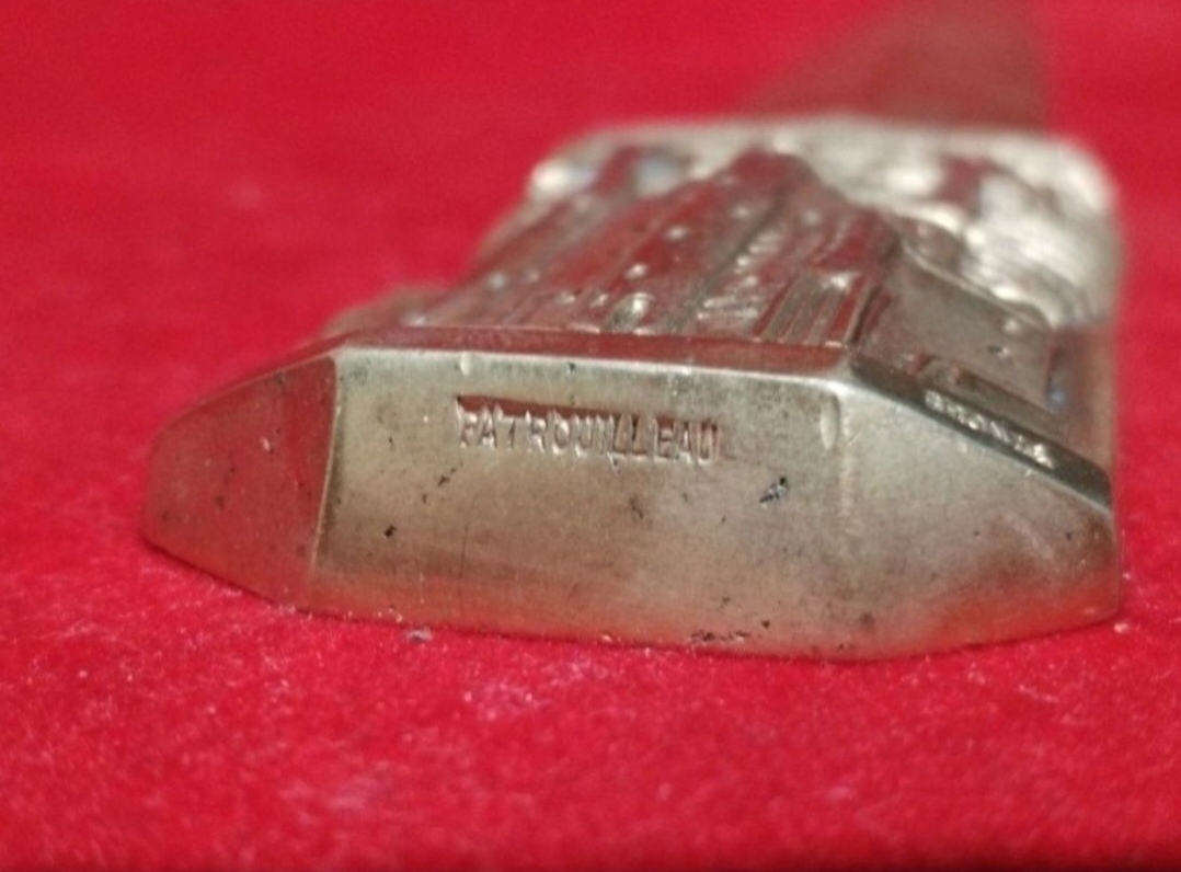 Sculptura unica in bronz, anii 1920-1925, placheta sub forma de pumnal, semnat C. Charles, cu marcaje Patrouilleau si bronze.