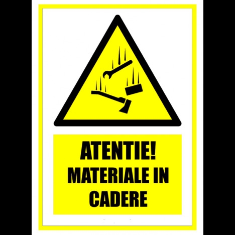 Vand Semn atentie materiale in cadere la un pret foarte avantajos! Semn atentie materiale in cadere Va putem oferi alte dimensiuni, materiale sau modele separat la cerere. Noua modalitate de print UV pentru semne si indicatoare este de ultima tehnologie UV . Aceasta tehnica este mult mai performanta decat o tehnica obisnuita de printare digitala. Atat calitatea sa net superioara, cat si versarilitatea sa pe imprimarea diferitelor produse este foarte mare si larga Un print UV consta intr-o tehnica de printare prin care cerneala se aplica pe un material sau obiect de imprimat, care este apoi uscata instant de catre un emitator de raze ultraviolet. Pentru a acoperi toata suprafata printata sunt utilizate numeroase tipuri de compusi, incluzand carbonatul de calciu si caolinitul. Aceasta imprimare UV este o maniera de imprimare digitala cu o tehnica noua care usuca cerneala. Se poate folosi pe o gama larga de materiale, astfel incat se poate imprima pe plastic, metal, hartie, carton, placi ceramice, sticla, lemn si multe altele. ? Autocolant industrial UV pentru semne si indicatoare ? Folie adeziva din PVC polimeric, utilizata in special la exterior, pentru decorarea suprafetelor drepte, etc; ? Grosimea este de 90 microni. ? Adezivul este pe baza de poliacrilat, permanent. ? pentru interior si exterior. ? Suprafata foliei este integral colorata, lucioasa (59 de culori) sau mata (56 culori). ? Placi forex industrial UV industrial pentru semne si indicatoare cu suprafata tare, lucioasa, bun izolator termic si fonic, rezistenta mare la agenti naturali si corozivi, flamabilitate redusa. ? Gama de culori disponibile in permanenta in stoc: rosu, albastru inchis, albastru deschis, negru, galben inchis, galben deschis, gri, verde. ? Placile din PVC compact industrial au suprafata dura si lucioasa. Se recomanda folosirea acestor placi atat pentru aplicatii indoor, cat si pentru aplicatii outdoor, datorita proprietatii materialului de a fi un bun izolator termic si fonic. Placile din PVC compact sunt vacuumabile si termoformabile. ? Grosimi disponibile in permanenta in stoc: 2mm; 3mm. ? Placi bond industrial uv pentru semne si indicatoare ? placi sandwich aluminiu cunoscute si sub denumirile comerciale de alucobond, alubond si dibond. ? Utilizate pentru placari fatade, placari interioare, placari exterioare. ? Este un material cu doua fete din aluminiu si un miez din polietilena ce inlocuieste cu succes tabla, lambriurile sau placajele plastice. ? Miezul este fixat prin aderenta pe fetele din tabla, pe toata suprafata. ? Tabla este vopsita in minim doua straturi, peste care se aplica un strat de lac protector compatibil cu vopseaua. ? Panourile pot avea o singura fata decor sau ambele fete colorate ? ? Placile sunt foarte usor de prelucrat, putand fi personalizate prin laminare, serigrafiere, tipar digital si lacuire, fiind usor de intretinut si avand o durata sporita de viata.. www.prevenirea.ro - 0724 306 714. Va rugam sa selectati dimensiunea potrivita pentru dvs.