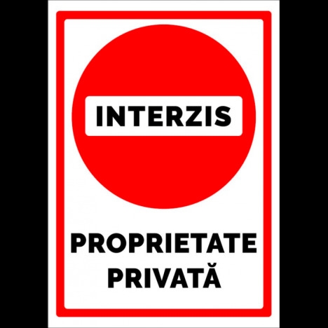 Vand Semn de interzis proprietate privata la un pret foarte avantajos! Semn de interzis proprietate privata Va putem oferi alte dimensiuni, materiale sau modele separat la cerere. Noua modalitate de print UV pentru semne si indicatoare este de ultima tehnologie UV . Aceasta tehnica este mult mai performanta decat o tehnica obisnuita de printare digitala. Atat calitatea sa net superioara, cat si versarilitatea sa pe imprimarea diferitelor produse este foarte mare si larga Un print UV consta intr-o tehnica de printare prin care cerneala se aplica pe un material sau obiect de imprimat, care este apoi uscata instant de catre un emitator de raze ultraviolet. Pentru a acoperi toata suprafata printata sunt utilizate numeroase tipuri de compusi, incluzand carbonatul de calciu si caolinitul. Aceasta imprimare UV este o maniera de imprimare digitala cu o tehnica noua care usuca cerneala. Se poate folosi pe o gama larga de materiale, astfel incat se poate imprima pe plastic, metal, hartie, carton, placi ceramice, sticla, lemn si multe altele. ? Autocolant industrial UV pentru semne si indicatoare ? Folie adeziva din PVC polimeric, utilizata in special la exterior, pentru decorarea suprafetelor drepte, etc; ? Grosimea este de 90 microni. ? Adezivul este pe baza de poliacrilat, permanent. ? pentru interior si exterior. ? Suprafata foliei este integral colorata, lucioasa (59 de culori) sau mata (56 culori). ? Placi forex industrial UV industrial pentru semne si indicatoare cu suprafata tare, lucioasa, bun izolator termic si fonic, rezistenta mare la agenti naturali si corozivi, flamabilitate redusa. ? Gama de culori disponibile in permanenta in stoc: rosu, albastru inchis, albastru deschis, negru, galben inchis, galben deschis, gri, verde. ? Placile din PVC compact industrial au suprafata dura si lucioasa. Se recomanda folosirea acestor placi atat pentru aplicatii indoor, cat si pentru aplicatii outdoor, datorita proprietatii materialului de a fi un bun izolator termic si fonic. Placile din PVC compact sunt vacuumabile si termoformabile. ? Grosimi disponibile in permanenta in stoc: 2mm; 3mm. ? Placi bond industrial uv pentru semne si indicatoare ? placi sandwich aluminiu cunoscute si sub denumirile comerciale de alucobond, alubond si dibond. ? Utilizate pentru placari fatade, placari interioare, placari exterioare. ? Este un material cu doua fete din aluminiu si un miez din polietilena ce inlocuieste cu succes tabla, lambriurile sau placajele plastice. ? Miezul este fixat prin aderenta pe fetele din tabla, pe toata suprafata. ? Tabla este vopsita in minim doua straturi, peste care se aplica un strat de lac protector compatibil cu vopseaua. ? Panourile pot avea o singura fata decor sau ambele fete colorate ? ? Placile sunt foarte usor de prelucrat, putand fi personalizate prin laminare, serigrafiere, tipar digital si lacuire, fiind usor de intretinut si avand o durata sporita de viata.. www.prevenirea.ro - 0724 306 714. Va rugam sa selectati dimensiunea potrivita pentru dvs.