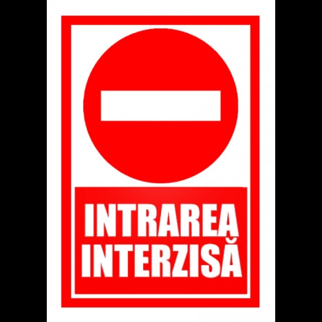 Vand Semn de intrarea interzisa la un pret foarte avantajos! Semn de intrarea interzisa Va putem oferi alte dimensiuni, materiale sau modele separat la cerere. Noua modalitate de print UV pentru semne si indicatoare este de ultima tehnologie UV . Aceasta tehnica este mult mai performanta decat o tehnica obisnuita de printare digitala. Atat calitatea sa net superioara, cat si versarilitatea sa pe imprimarea diferitelor produse este foarte mare si larga Un print UV consta intr-o tehnica de printare prin care cerneala se aplica pe un material sau obiect de imprimat, care este apoi uscata instant de catre un emitator de raze ultraviolet. Pentru a acoperi toata suprafata printata sunt utilizate numeroase tipuri de compusi, incluzand carbonatul de calciu si caolinitul. Aceasta imprimare UV este o maniera de imprimare digitala cu o tehnica noua care usuca cerneala. Se poate folosi pe o gama larga de materiale, astfel incat se poate imprima pe plastic, metal, hartie, carton, placi ceramice, sticla, lemn si multe altele. ? Autocolant industrial UV pentru semne si indicatoare ? Folie adeziva din PVC polimeric, utilizata in special la exterior, pentru decorarea suprafetelor drepte, etc; ? Grosimea este de 90 microni. ? Adezivul este pe baza de poliacrilat, permanent. ? pentru interior si exterior. ? Suprafata foliei este integral colorata, lucioasa (59 de culori) sau mata (56 culori). ? Placi forex industrial UV industrial pentru semne si indicatoare cu suprafata tare, lucioasa, bun izolator termic si fonic, rezistenta mare la agenti naturali si corozivi, flamabilitate redusa. ? Gama de culori disponibile in permanenta in stoc: rosu, albastru inchis, albastru deschis, negru, galben inchis, galben deschis, gri, verde. ? Placile din PVC compact industrial au suprafata dura si lucioasa. Se recomanda folosirea acestor placi atat pentru aplicatii indoor, cat si pentru aplicatii outdoor, datorita proprietatii materialului de a fi un bun izolator termic si fonic. Placile din PVC compact sunt vacuumabile si termoformabile. ? Grosimi disponibile in permanenta in stoc: 2mm; 3mm. ? Placi bond industrial uv pentru semne si indicatoare ? placi sandwich aluminiu cunoscute si sub denumirile comerciale de alucobond, alubond si dibond. ? Utilizate pentru placari fatade, placari interioare, placari exterioare. ? Este un material cu doua fete din aluminiu si un miez din polietilena ce inlocuieste cu succes tabla, lambriurile sau placajele plastice. ? Miezul este fixat prin aderenta pe fetele din tabla, pe toata suprafata. ? Tabla este vopsita in minim doua straturi, peste care se aplica un strat de lac protector compatibil cu vopseaua. ? Panourile pot avea o singura fata decor sau ambele fete colorate ? ? Placile sunt foarte usor de prelucrat, putand fi personalizate prin laminare, serigrafiere, tipar digital si lacuire, fiind usor de intretinut si avand o durata sporita de viata.. www.prevenirea.ro - 0724 306 714. Va rugam sa selectati dimensiunea potrivita pentru dvs.
