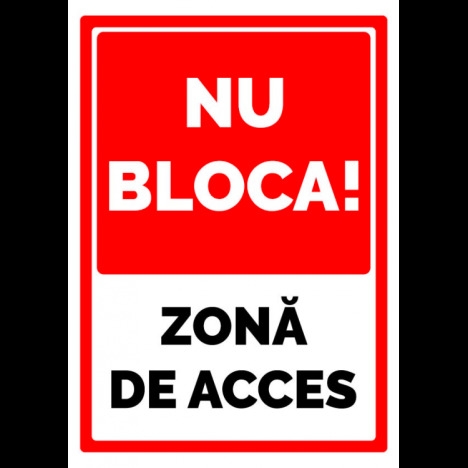 Vand Semn nu bloca zona de acces la un pret foarte avantajos! Semn nu bloca zona de acces Va putem oferi alte dimensiuni, materiale sau modele separat la cerere. Noua modalitate de print UV pentru semne si indicatoare este de ultima tehnologie UV . Aceasta tehnica este mult mai performanta decat o tehnica obisnuita de printare digitala. Atat calitatea sa net superioara, cat si versarilitatea sa pe imprimarea diferitelor produse este foarte mare si larga Un print UV consta intr-o tehnica de printare prin care cerneala se aplica pe un material sau obiect de imprimat, care este apoi uscata instant de catre un emitator de raze ultraviolet. Pentru a acoperi toata suprafata printata sunt utilizate numeroase tipuri de compusi, incluzand carbonatul de calciu si caolinitul. Aceasta imprimare UV este o maniera de imprimare digitala cu o tehnica noua care usuca cerneala. Se poate folosi pe o gama larga de materiale, astfel incat se poate imprima pe plastic, metal, hartie, carton, placi ceramice, sticla, lemn si multe altele. ? Autocolant industrial UV pentru semne si indicatoare ? Folie adeziva din PVC polimeric, utilizata in special la exterior, pentru decorarea suprafetelor drepte, etc; ? Grosimea este de 90 microni. ? Adezivul este pe baza de poliacrilat, permanent. ? pentru interior si exterior. ? Suprafata foliei este integral colorata, lucioasa (59 de culori) sau mata (56 culori). ? Placi forex industrial UV industrial pentru semne si indicatoare cu suprafata tare, lucioasa, bun izolator termic si fonic, rezistenta mare la agenti naturali si corozivi, flamabilitate redusa. ? Gama de culori disponibile in permanenta in stoc: rosu, albastru inchis, albastru deschis, negru, galben inchis, galben deschis, gri, verde. ? Placile din PVC compact industrial au suprafata dura si lucioasa. Se recomanda folosirea acestor placi atat pentru aplicatii indoor, cat si pentru aplicatii outdoor, datorita proprietatii materialului de a fi un bun izolator termic si fonic. Placile din PVC compact sunt vacuumabile si termoformabile. ? Grosimi disponibile in permanenta in stoc: 2mm; 3mm. ? Placi bond industrial uv pentru semne si indicatoare ? placi sandwich aluminiu cunoscute si sub denumirile comerciale de alucobond, alubond si dibond. ? Utilizate pentru placari fatade, placari interioare, placari exterioare. ? Este un material cu doua fete din aluminiu si un miez din polietilena ce inlocuieste cu succes tabla, lambriurile sau placajele plastice. ? Miezul este fixat prin aderenta pe fetele din tabla, pe toata suprafata. ? Tabla este vopsita in minim doua straturi, peste care se aplica un strat de lac protector compatibil cu vopseaua. ? Panourile pot avea o singura fata decor sau ambele fete colorate ? ? Placile sunt foarte usor de prelucrat, putand fi personalizate prin laminare, serigrafiere, tipar digital si lacuire, fiind usor de intretinut si avand o durata sporita de viata.. www.prevenirea.ro - 0724 306 714. Va rugam sa selectati dimensiunea potrivita pentru dvs.