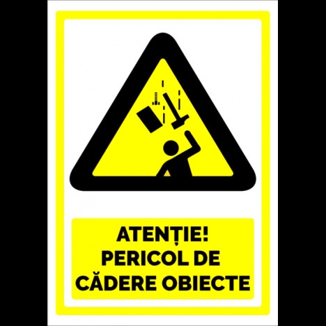 Vand Semn pentru pericol de cadere obiecte la un pret foarte avantajos! Semn pentru pericol de cadere obiecte Va putem oferi alte dimensiuni, materiale sau modele separat la cerere. Noua modalitate de print UV pentru semne si indicatoare este de ultima tehnologie UV . Aceasta tehnica este mult mai performanta decat o tehnica obisnuita de printare digitala. Atat calitatea sa net superioara, cat si versarilitatea sa pe imprimarea diferitelor produse este foarte mare si larga Un print UV consta intr-o tehnica de printare prin care cerneala se aplica pe un material sau obiect de imprimat, care este apoi uscata instant de catre un emitator de raze ultraviolet. Pentru a acoperi toata suprafata printata sunt utilizate numeroase tipuri de compusi, incluzand carbonatul de calciu si caolinitul. Aceasta imprimare UV este o maniera de imprimare digitala cu o tehnica noua care usuca cerneala. Se poate folosi pe o gama larga de materiale, astfel incat se poate imprima pe plastic, metal, hartie, carton, placi ceramice, sticla, lemn si multe altele. ? Autocolant industrial UV pentru semne si indicatoare ? Folie adeziva din PVC polimeric, utilizata in special la exterior, pentru decorarea suprafetelor drepte, etc; ? Grosimea este de 90 microni. ? Adezivul este pe baza de poliacrilat, permanent. ? pentru interior si exterior. ? Suprafata foliei este integral colorata, lucioasa (59 de culori) sau mata (56 culori). ? Placi forex industrial UV industrial pentru semne si indicatoare cu suprafata tare, lucioasa, bun izolator termic si fonic, rezistenta mare la agenti naturali si corozivi, flamabilitate redusa. ? Gama de culori disponibile in permanenta in stoc: rosu, albastru inchis, albastru deschis, negru, galben inchis, galben deschis, gri, verde. ? Placile din PVC compact industrial au suprafata dura si lucioasa. Se recomanda folosirea acestor placi atat pentru aplicatii indoor, cat si pentru aplicatii outdoor, datorita proprietatii materialului de a fi un bun izolator termic si fonic. Placile din PVC compact sunt vacuumabile si termoformabile. ? Grosimi disponibile in permanenta in stoc: 2mm; 3mm. ? Placi bond industrial uv pentru semne si indicatoare ? placi sandwich aluminiu cunoscute si sub denumirile comerciale de alucobond, alubond si dibond. ? Utilizate pentru placari fatade, placari interioare, placari exterioare. ? Este un material cu doua fete din aluminiu si un miez din polietilena ce inlocuieste cu succes tabla, lambriurile sau placajele plastice. ? Miezul este fixat prin aderenta pe fetele din tabla, pe toata suprafata. ? Tabla este vopsita in minim doua straturi, peste care se aplica un strat de lac protector compatibil cu vopseaua. ? Panourile pot avea o singura fata decor sau ambele fete colorate ? ? Placile sunt foarte usor de prelucrat, putand fi personalizate prin laminare, serigrafiere, tipar digital si lacuire, fiind usor de intretinut si avand o durata sporita de viata.. www.prevenirea.ro - 0724 306 714. Va rugam sa selectati dimensiunea potrivita pentru dvs.