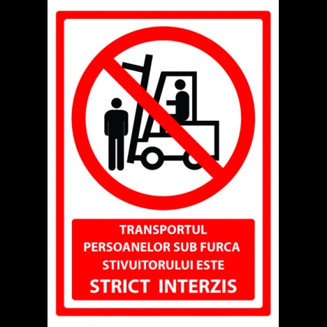 Semn pentru transportul persoanelor sub furca stivuitorului este strict interzis