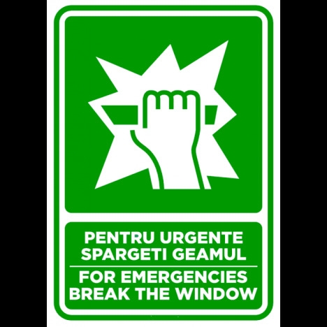 Vand Semn pentru urgente sparge geamul la un pret foarte avantajos! Semn pentru urgente sparge geamul Va putem oferi alte dimensiuni, materiale sau modele separat la cerere. Noua modalitate de print UV pentru semne si indicatoare este de ultima tehnologie UV . Aceasta tehnica este mult mai performanta decat o tehnica obisnuita de printare digitala. Atat calitatea sa net superioara, cat si versarilitatea sa pe imprimarea diferitelor produse este foarte mare si larga Un print UV consta intr-o tehnica de printare prin care cerneala se aplica pe un material sau obiect de imprimat, care este apoi uscata instant de catre un emitator de raze ultraviolet. Pentru a acoperi toata suprafata printata sunt utilizate numeroase tipuri de compusi, incluzand carbonatul de calciu si caolinitul. Aceasta imprimare UV este o maniera de imprimare digitala cu o tehnica noua care usuca cerneala. Se poate folosi pe o gama larga de materiale, astfel incat se poate imprima pe plastic, metal, hartie, carton, placi ceramice, sticla, lemn si multe altele. ? Autocolant industrial UV pentru semne si indicatoare ? Folie adeziva din PVC polimeric, utilizata in special la exterior, pentru decorarea suprafetelor drepte, etc; ? Grosimea este de 90 microni. ? Adezivul este pe baza de poliacrilat, permanent. ? pentru interior si exterior. ? Suprafata foliei este integral colorata, lucioasa (59 de culori) sau mata (56 culori). ? Placi forex industrial UV industrial pentru semne si indicatoare cu suprafata tare, lucioasa, bun izolator termic si fonic, rezistenta mare la agenti naturali si corozivi, flamabilitate redusa. ? Gama de culori disponibile in permanenta in stoc: rosu, albastru inchis, albastru deschis, negru, galben inchis, galben deschis, gri, verde. ? Placile din PVC compact industrial au suprafata dura si lucioasa. Se recomanda folosirea acestor placi atat pentru aplicatii indoor, cat si pentru aplicatii outdoor, datorita proprietatii materialului de a fi un bun izolator termic si fonic. Placile din PVC compact sunt vacuumabile si termoformabile. ? Grosimi disponibile in permanenta in stoc: 2mm; 3mm. ? Placi bond industrial uv pentru semne si indicatoare ? placi sandwich aluminiu cunoscute si sub denumirile comerciale de alucobond, alubond si dibond. ? Utilizate pentru placari fatade, placari interioare, placari exterioare. ? Este un material cu doua fete din aluminiu si un miez din polietilena ce inlocuieste cu succes tabla, lambriurile sau placajele plastice. ? Miezul este fixat prin aderenta pe fetele din tabla, pe toata suprafata. ? Tabla este vopsita in minim doua straturi, peste care se aplica un strat de lac protector compatibil cu vopseaua. ? Panourile pot avea o singura fata decor sau ambele fete colorate ? ? Placile sunt foarte usor de prelucrat, putand fi personalizate prin laminare, serigrafiere, tipar digital si lacuire, fiind usor de intretinut si avand o durata sporita de viata.. www.prevenirea.ro - 0724 306 714. Va rugam sa selectati dimensiunea potrivita pentru dvs.