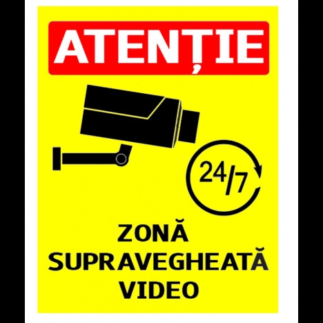 Vand Semn pentru zona supravegheata video 24 din 7 la un pret foarte avantajos! Semn pentru zona supravegheata video 24 din 7 Va putem oferi alte dimensiuni, materiale sau modele separat la cerere. Noua modalitate de print UV pentru semne si indicatoare este de ultima tehnologie UV . Aceasta tehnica este mult mai performanta decat o tehnica obisnuita de printare digitala. Atat calitatea sa net superioara, cat si versarilitatea sa pe imprimarea diferitelor produse este foarte mare si larga Un print UV consta intr-o tehnica de printare prin care cerneala se aplica pe un material sau obiect de imprimat, care este apoi uscata instant de catre un emitator de raze ultraviolet. Pentru a acoperi toata suprafata printata sunt utilizate numeroase tipuri de compusi, incluzand carbonatul de calciu si caolinitul. Aceasta imprimare UV este o maniera de imprimare digitala cu o tehnica noua care usuca cerneala. Se poate folosi pe o gama larga de materiale, astfel incat se poate imprima pe plastic, metal, hartie, carton, placi ceramice, sticla, lemn si multe altele. ? Autocolant industrial UV pentru semne si indicatoare ? Folie adeziva din PVC polimeric, utilizata in special la exterior, pentru decorarea suprafetelor drepte, etc; ? Grosimea este de 90 microni. ? Adezivul este pe baza de poliacrilat, permanent. ? pentru interior si exterior. ? Suprafata foliei este integral colorata, lucioasa (59 de culori) sau mata (56 culori). ? Placi forex industrial UV industrial pentru semne si indicatoare cu suprafata tare, lucioasa, bun izolator termic si fonic, rezistenta mare la agenti naturali si corozivi, flamabilitate redusa. ? Gama de culori disponibile in permanenta in stoc: rosu, albastru inchis, albastru deschis, negru, galben inchis, galben deschis, gri, verde. ? Placile din PVC compact industrial au suprafata dura si lucioasa. Se recomanda folosirea acestor placi atat pentru aplicatii indoor, cat si pentru aplicatii outdoor, datorita proprietatii materialului de a fi un bun izolator termic si fonic. Placile din PVC compact sunt vacuumabile si termoformabile. ? Grosimi disponibile in permanenta in stoc: 2mm; 3mm. ? Placi bond industrial uv pentru semne si indicatoare ? placi sandwich aluminiu cunoscute si sub denumirile comerciale de alucobond, alubond si dibond. ? Utilizate pentru placari fatade, placari interioare, placari exterioare. ? Este un material cu doua fete din aluminiu si un miez din polietilena ce inlocuieste cu succes tabla, lambriurile sau placajele plastice. ? Miezul este fixat prin aderenta pe fetele din tabla, pe toata suprafata. ? Tabla este vopsita in minim doua straturi, peste care se aplica un strat de lac protector compatibil cu vopseaua. ? Panourile pot avea o singura fata decor sau ambele fete colorate ? ? Placile sunt foarte usor de prelucrat, putand fi personalizate prin laminare, serigrafiere, tipar digital si lacuire, fiind usor de intretinut si avand o durata sporita de viata.. www.prevenirea.ro - 0724 306 714. Va rugam sa selectati dimensiunea potrivita pentru dvs.