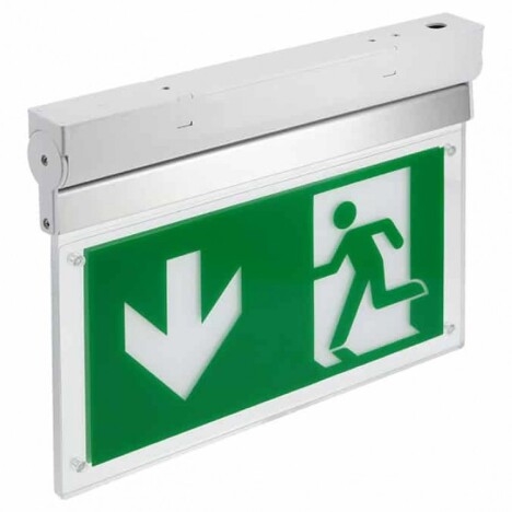 Vand Semn suspendat tavan doua fete iesire in jos la un pret foarte avantajos! Semn suspendat tavan doua fete iesire in jos Asigura iluminare cailor de evacuare in cazul deranjamentelor din reteaua de alimentare normala. Corpurile de regim permanent (M) la intreruperea tensiunii retelei de alimentare dupa timpul de comutare scurt raman in continuare functionale. Cele de regim nepermanent (NM) functioneaza doar in cazul intreruperii tensiunii retelei de alimentare.Timpul de comutare este mai mic de 1 secunda. Se utilizeaza in iluminatul de siguranta pentru indicarea traseelor de iesire in caz de pericol; iluminatul se realizeaza permanent; acumulatorul reincarcabil intra in functiune automat, cand se intrerupe alimentarea cu energie electrica; sunt echipate cu buton TEST si leduri de semnalizare a functionarii. Prevenirea recomanda corp de iluminat de emergenta GTV. Autonomie: 3 ore Dimensiuni: 316x230x35mm Grad de protectie: IP40 Material: aluminiu Putere: 3W Model: doua fete