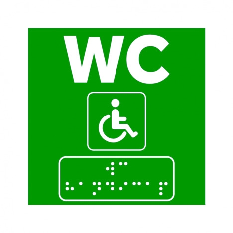 Vand Semne braille pentru wc persoane cu handicap verde la un pret foarte avantajos! Semne braille pentru wc persoane cu handicap verde Avem mai multe modele din care sa alegem in aceasta gama axata pe semnalizarea pentru toaleta si semnele generale pentru birou. Vizualizati celelalte game ale noastre pentru o solutie completa pentru cerintele dvs. de semnalizare a usilor arhitecturale .Alte modele pot fi fabricate la cerere. Va rugam sa contactati echipa de vanzari pentru comenzi de volum si finisaje, dimensiuni, culori si materiale la comanda. Dimensiuni 15x15 cm. Confectionata din PVC durabil de 3 mm grosime, placuta \"WC Persoane cu handicap\" este disponibila in culorile rosu, verde, albastru, negru sau gri, potrivindu-se perfect in designul si estetica spatiilor dumneavoastra. Suprafata frontala a placutei este prevazuta cu sistem tactil Braille, permitand persoanelor cu deficiente de vedere sau vedere redusa sa detecteze si sa citeasca informatiile prin atingere