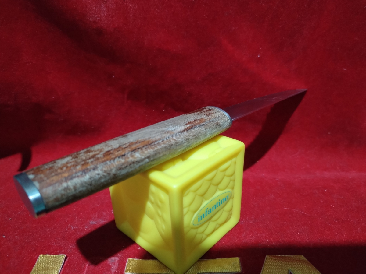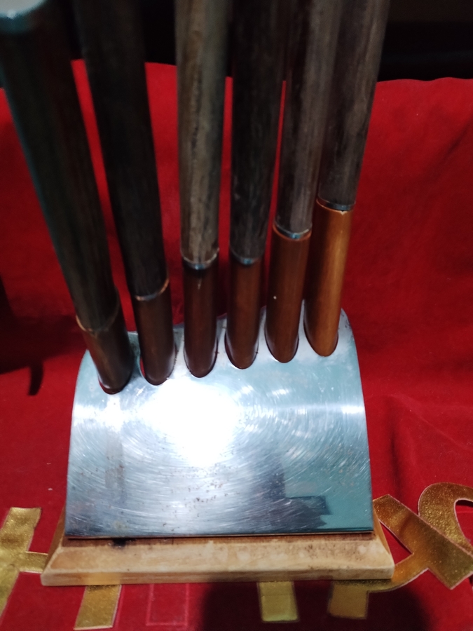 Suport din lemn masiv de nuc si suport cromat pentru cutite.