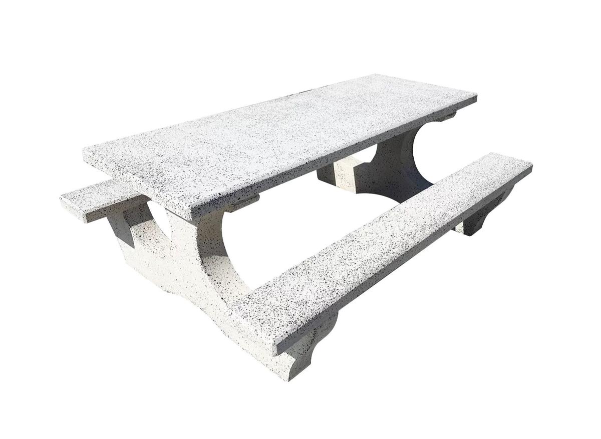 Designul simplu si elegant al acestui set de masa si banci se potriveste perfect in orice context urban. Linia curata si finisajul neted confera un aspect modern, dar clasic, care completeaza diverse stiluri de amenajare.