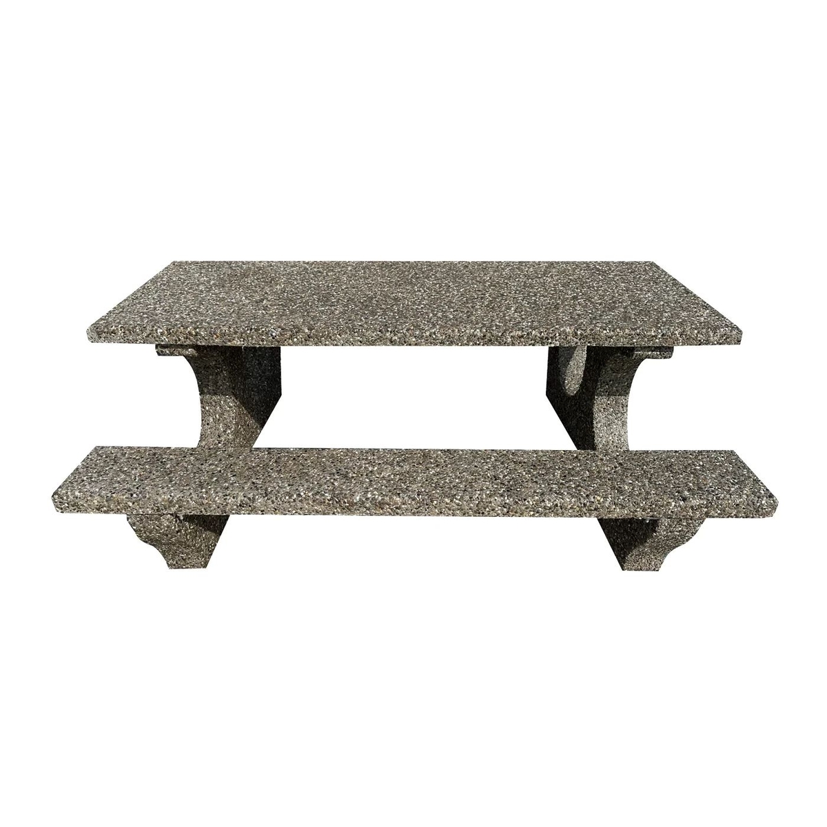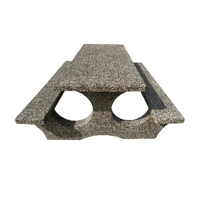 Masa fabricata din beton cu aspect de piatra naturala are o rezistenta ridicata la conditii meteorologice nefavorabile si la vandalism.