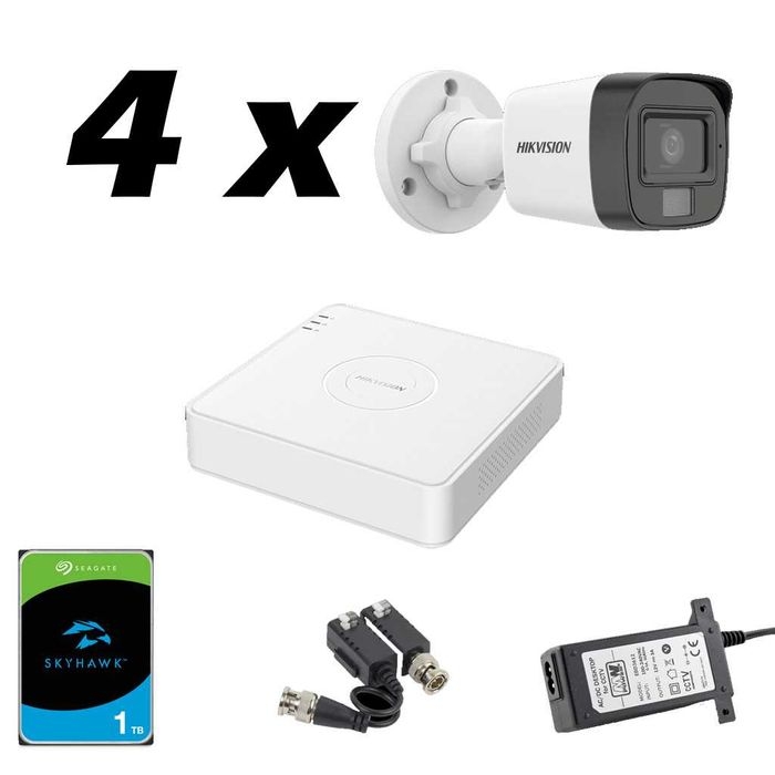 4 camere de supraveghere Hikvision, rezolutie 2MP, vizibilitate color pe timp de noapte, cu microfon integrat