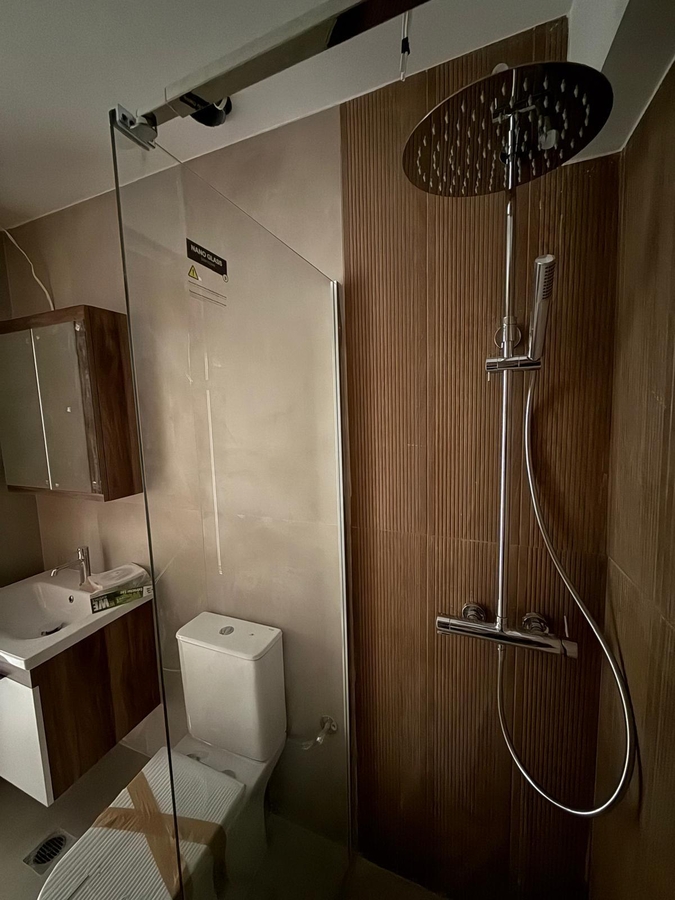 P + Etaj, 3 dormitoare (pentru familie si prieteni) + living + bucatarie open space, 2 bai superdotate, cu dus, veranda cu spatiu verde 23 mp cu vedere la mare + balcon la etaj cu balustrada de sticla si cu copertine de soare electrice, cu vedere la mare,