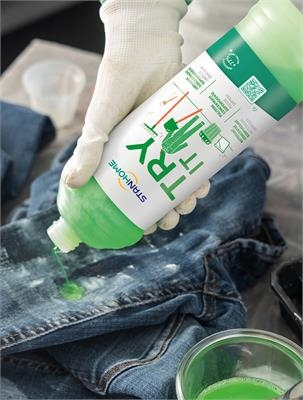 Poate fi aplicata direct pe pata pe textilele rezistente (blugi, salopete etc )sau poate fi utilizata ca aditiv pentru spalarea acestora.