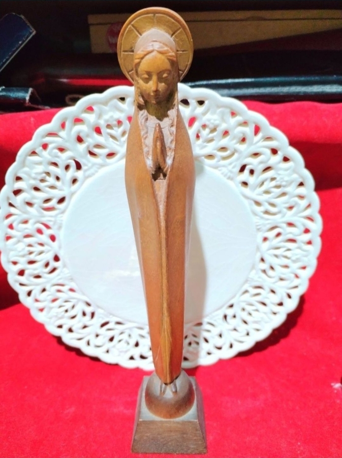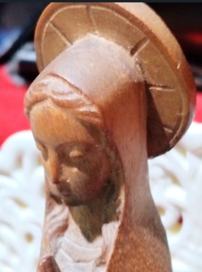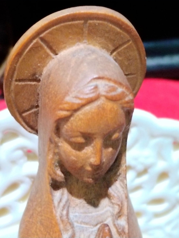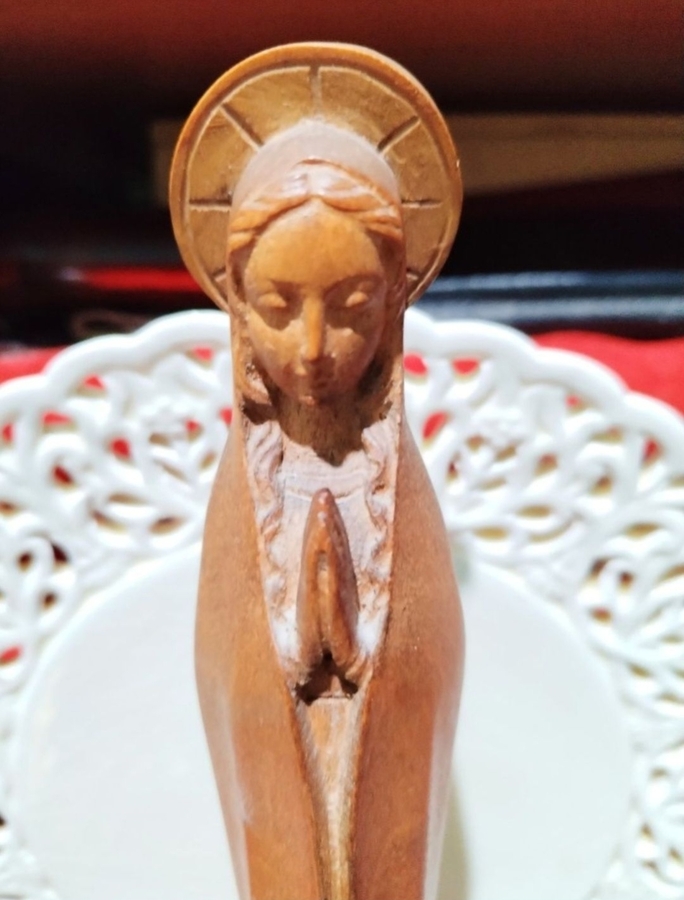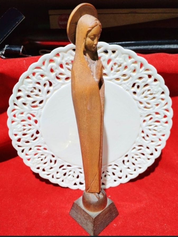 Statueta italiana sculptata in lemn cu Fecioara Maria rugandu-se, anii 1950-1960.