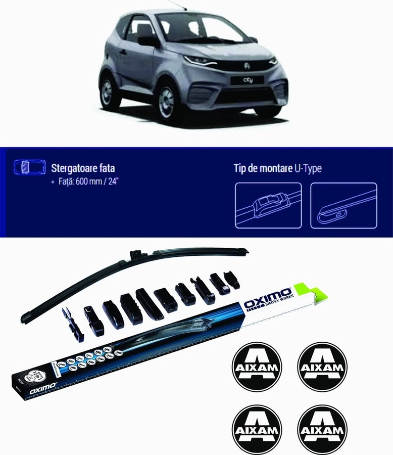 Stergator parbriz Aixam City 600mm 2012- 2016 OXIMO + 4 stickere AIXAM