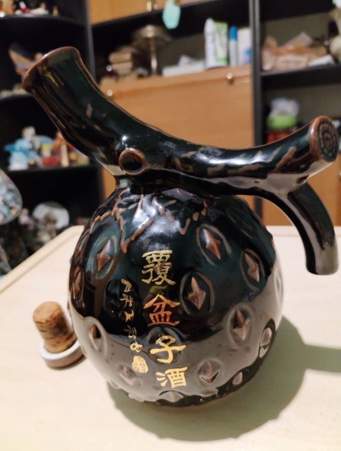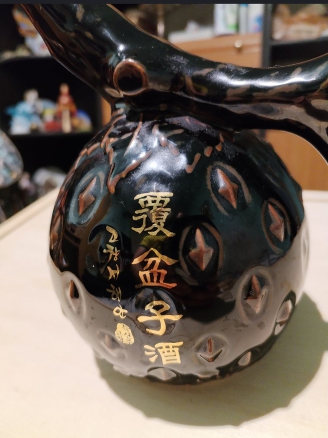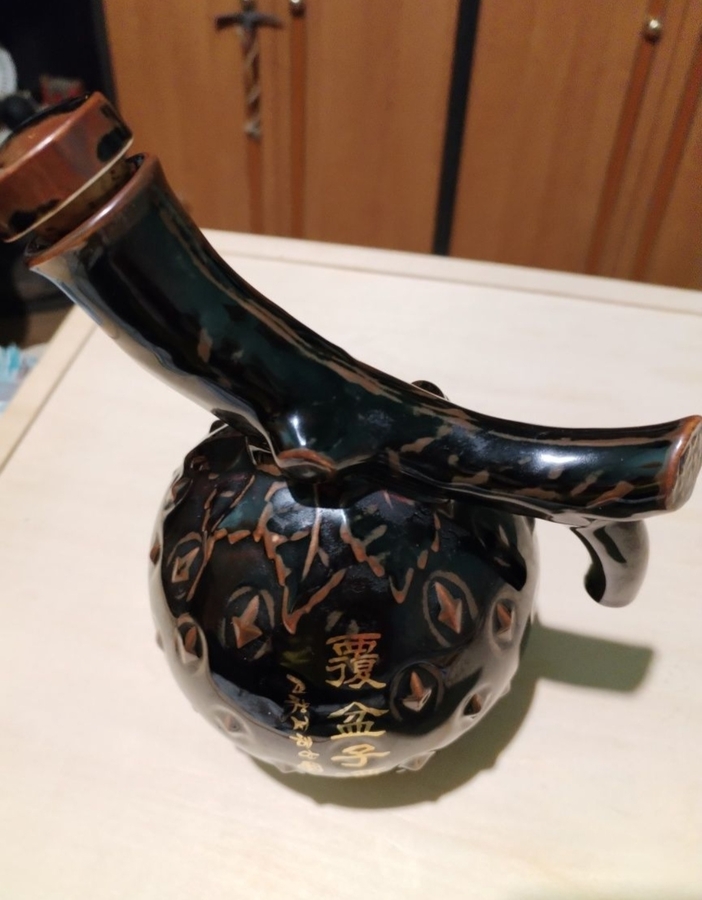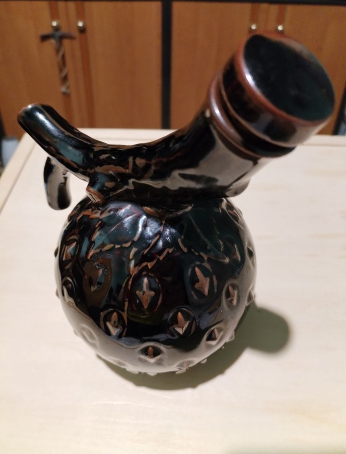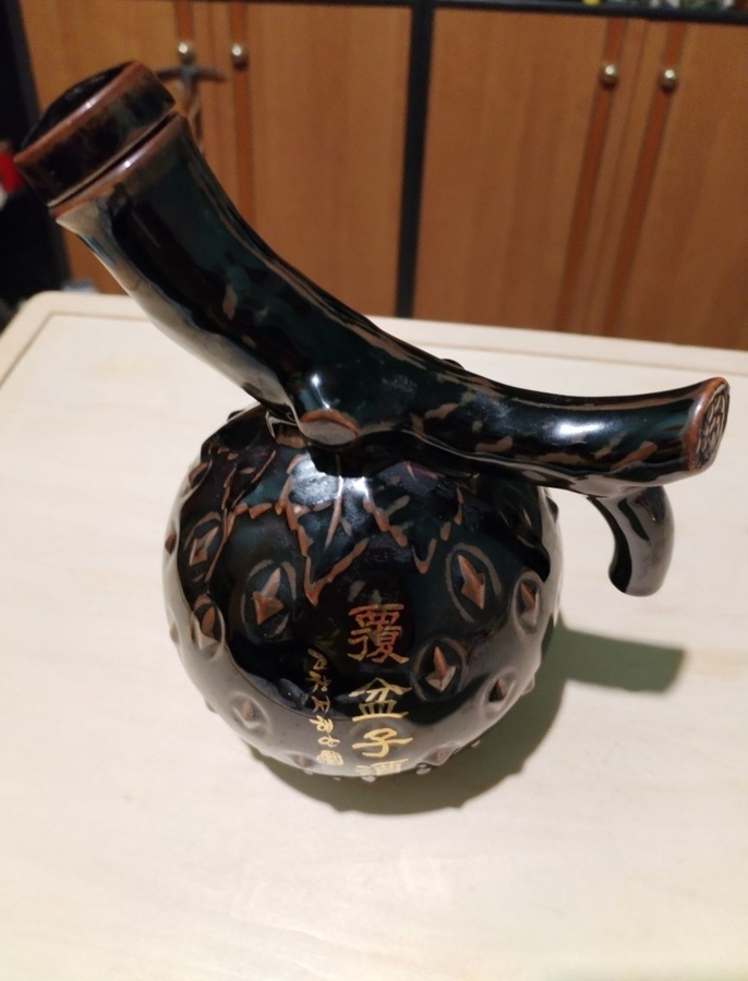 Sticla coreeana vintage de vin din ceramica emailata.