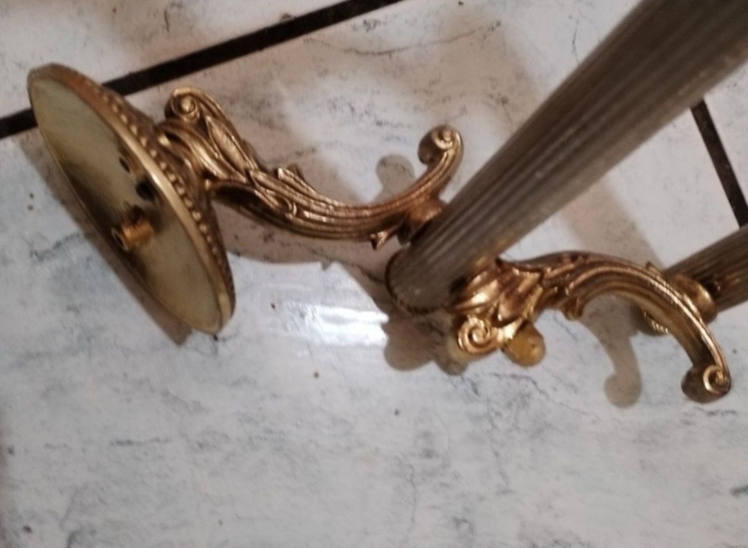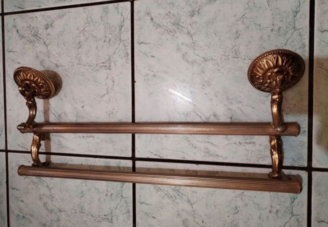 Suport vintage francez pentru prosoape, realizat in stil baroc. Este realizat din zinc masiv aurit. Lungime 50cm.
