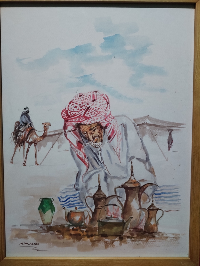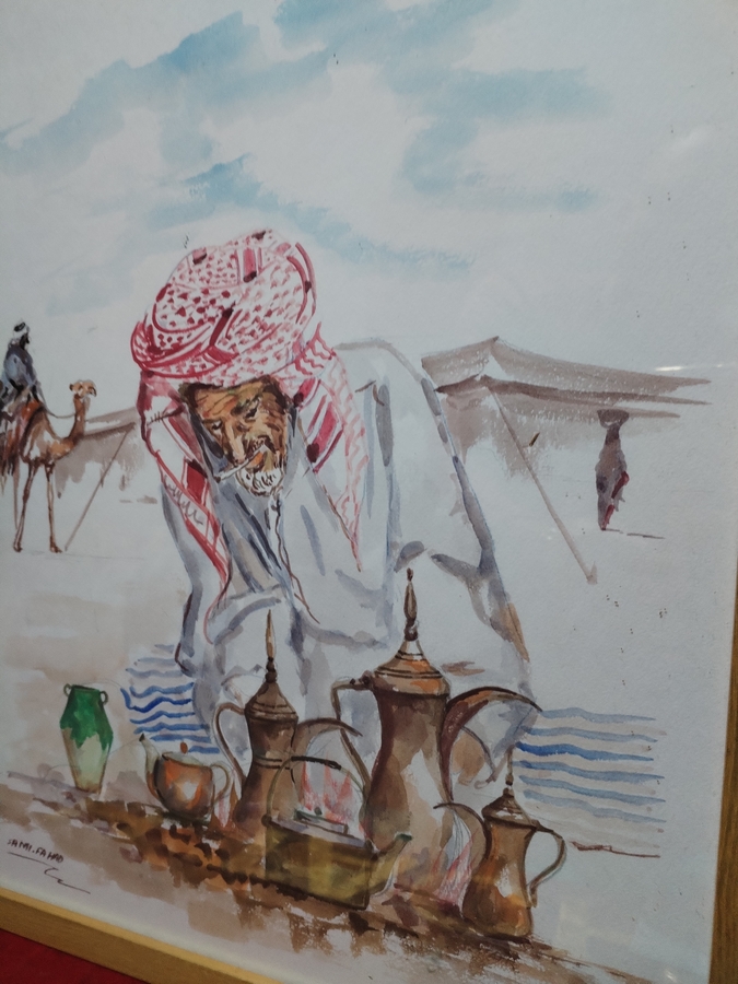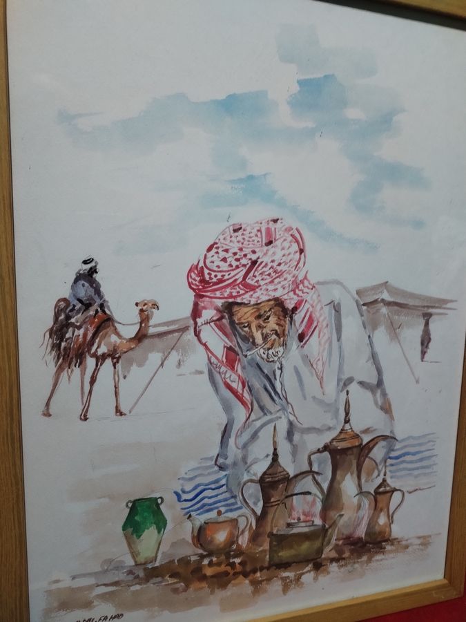 Tablou arab pictat in acuarela si semnat