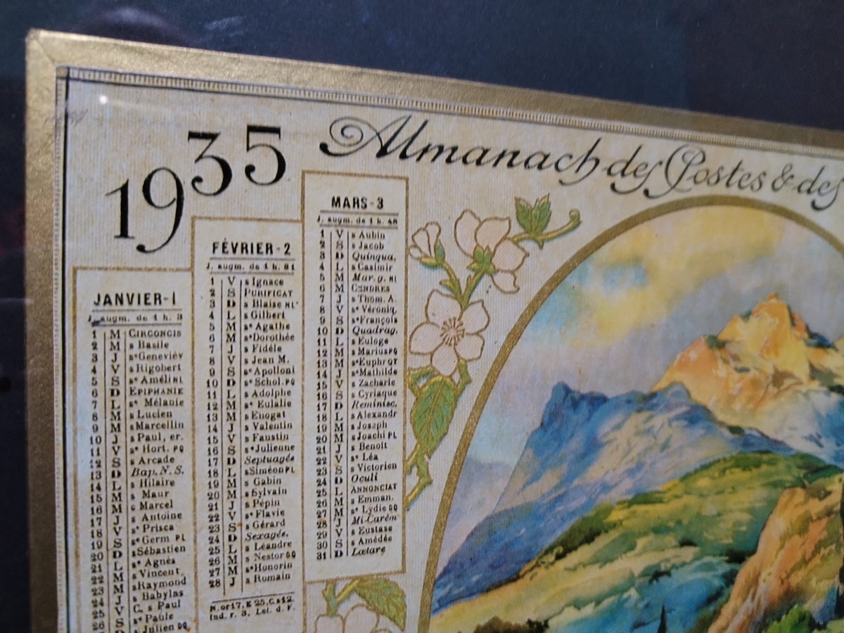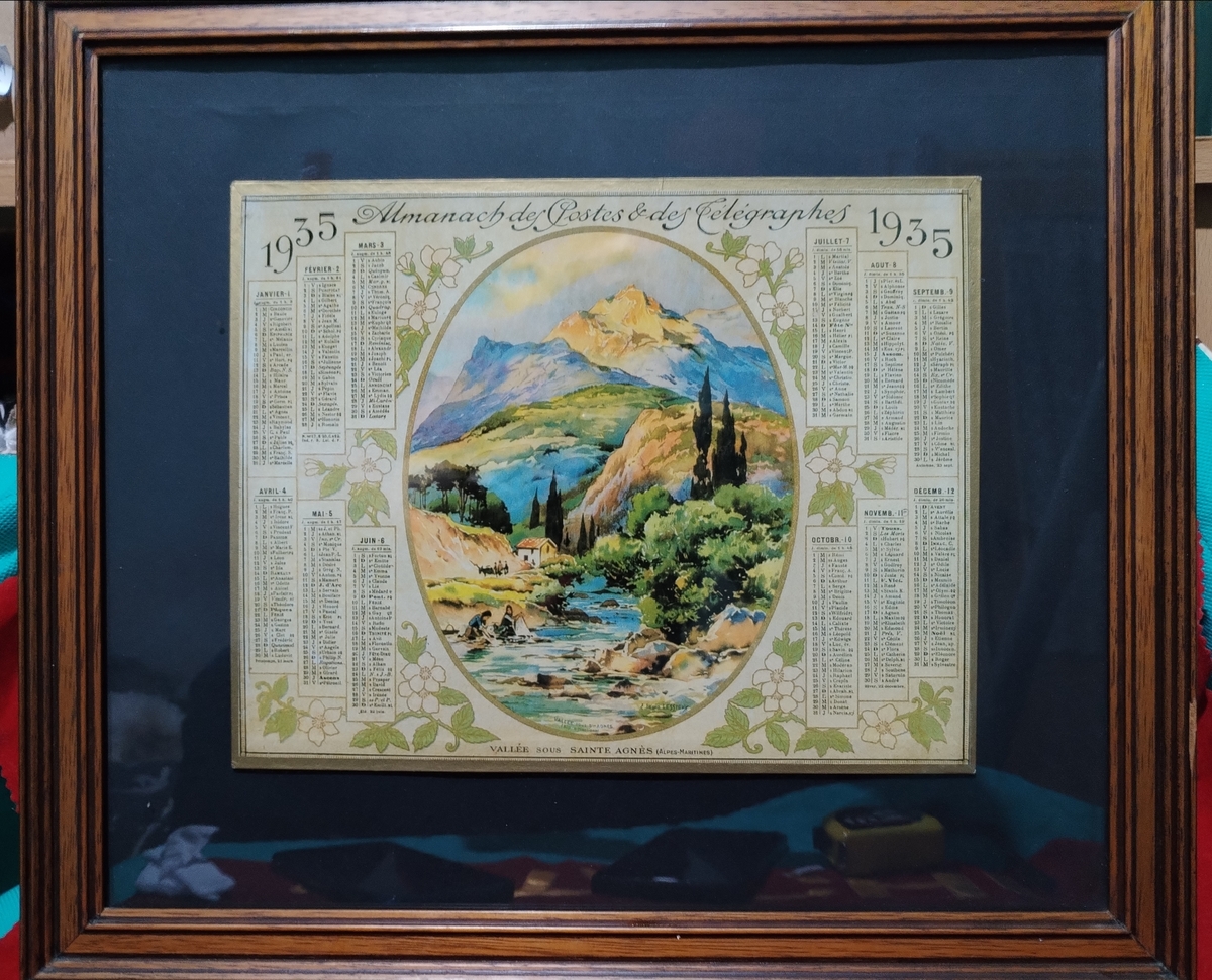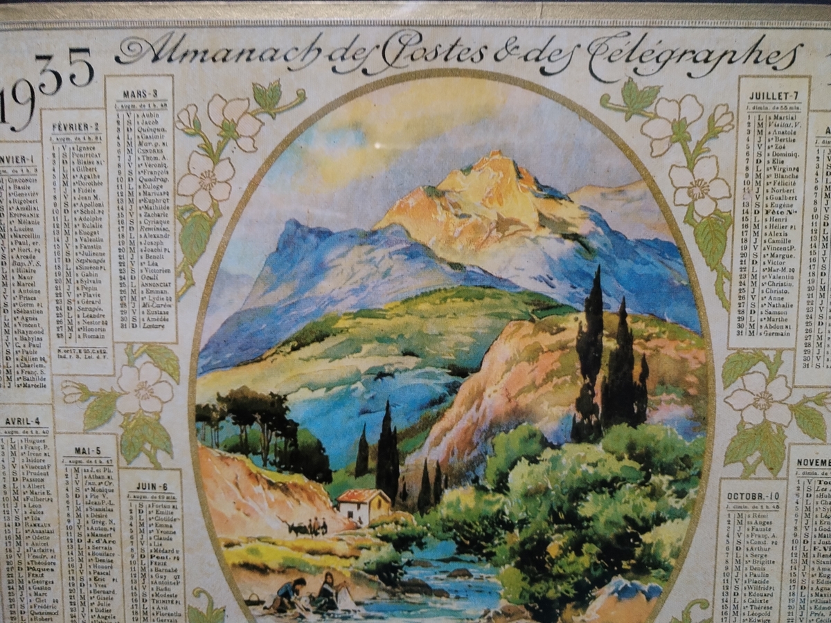 Tablou vintage cu Almanach des postes & des Telegraphes, din anul 1935.