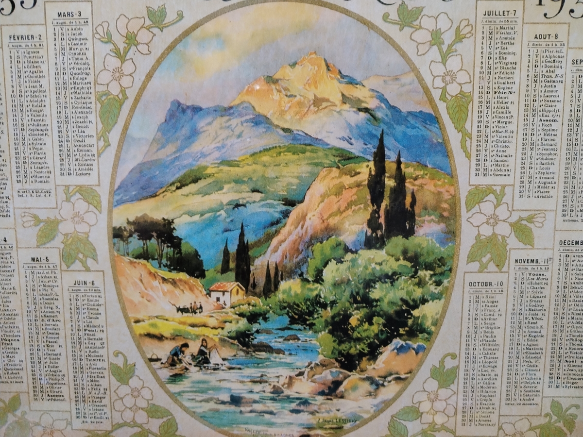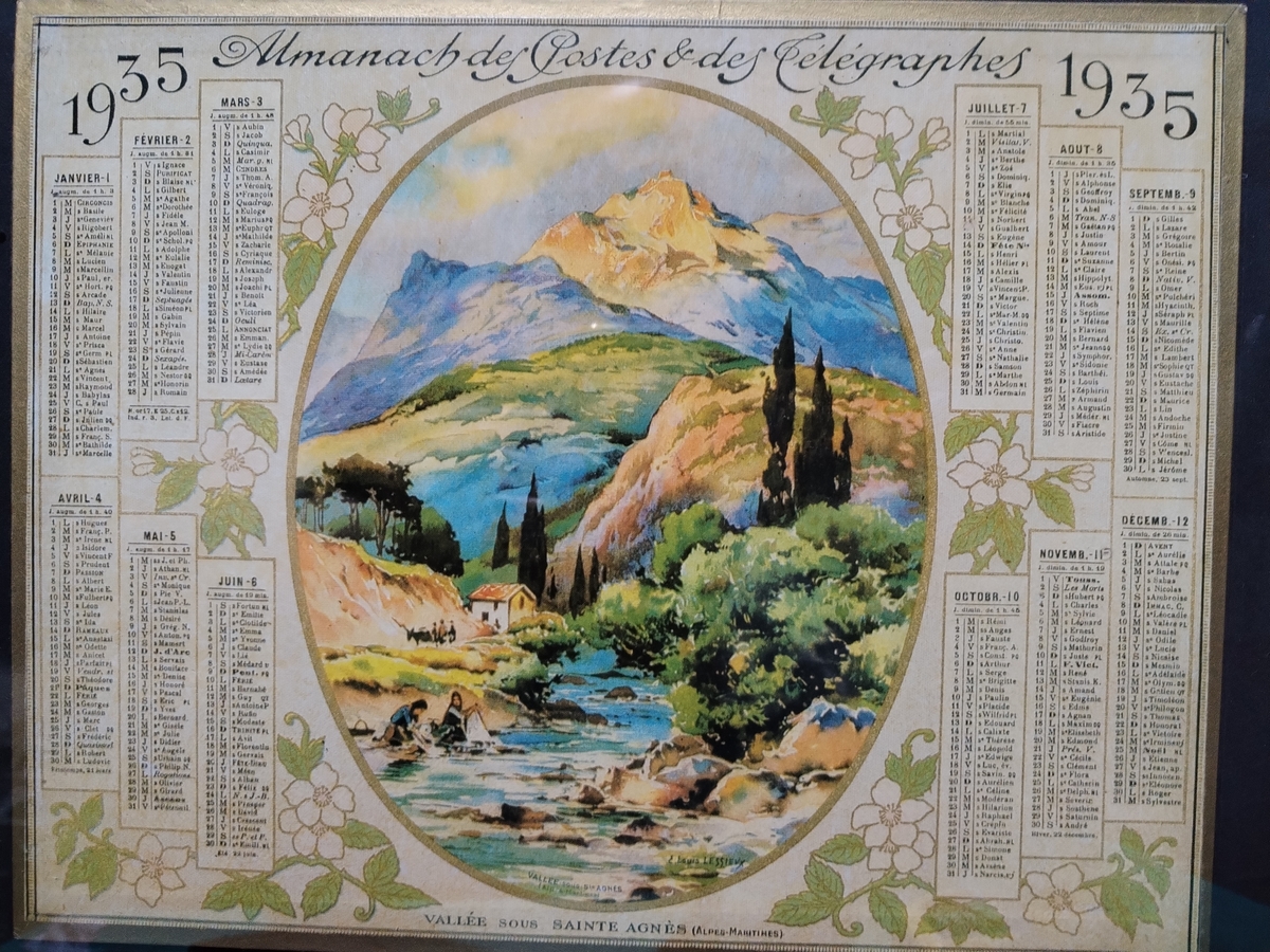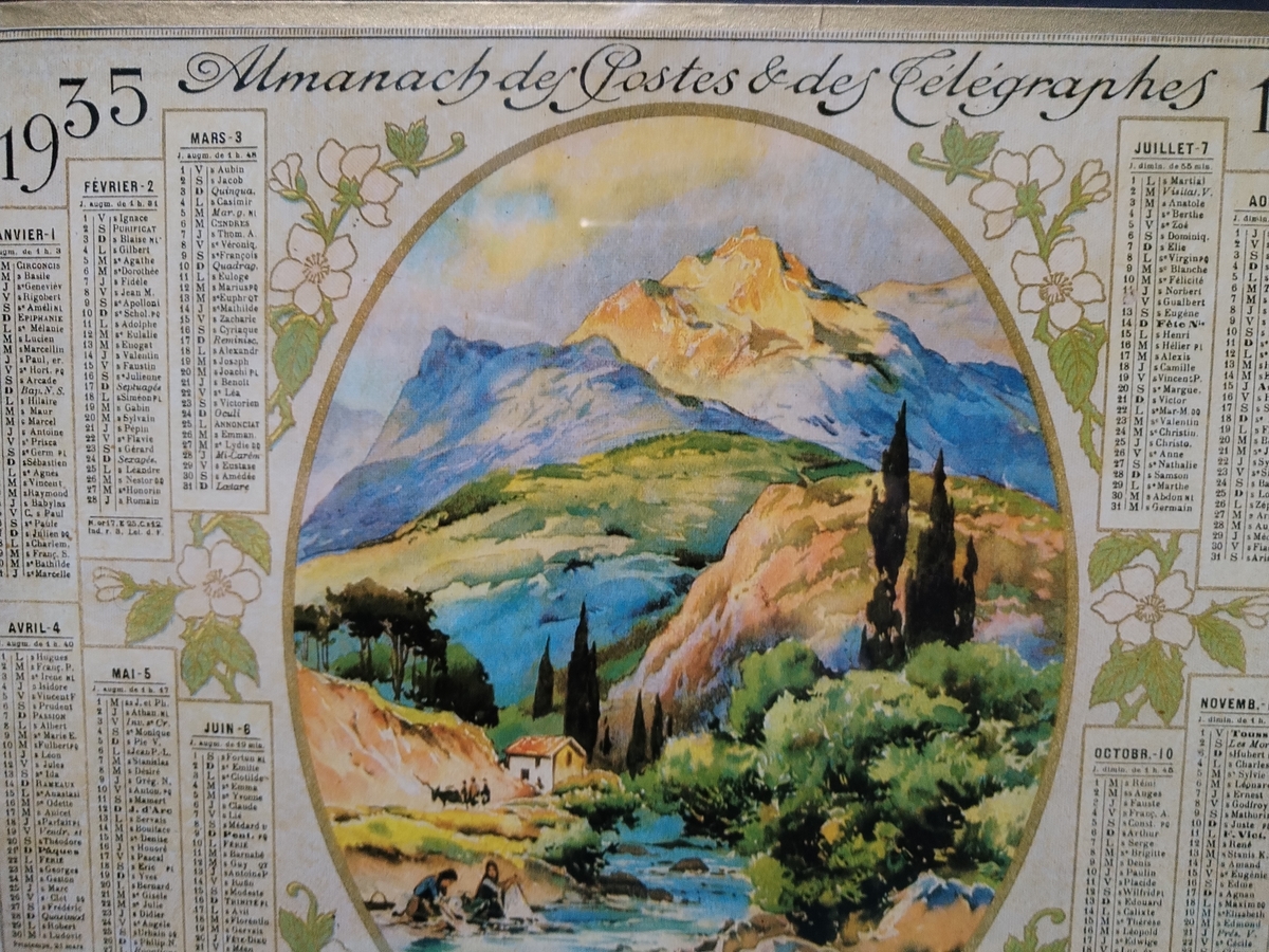 Tablou vintage cu Almanach des postes & des Telegraphes, din anul 1935.