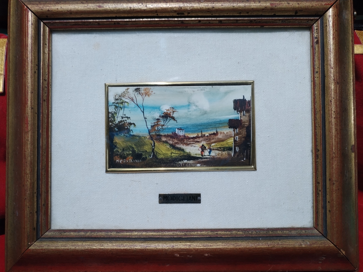 Tablou, miniatura rara pictata manual, semnata MC Dagliani