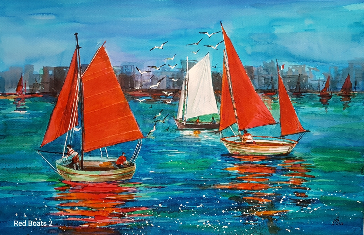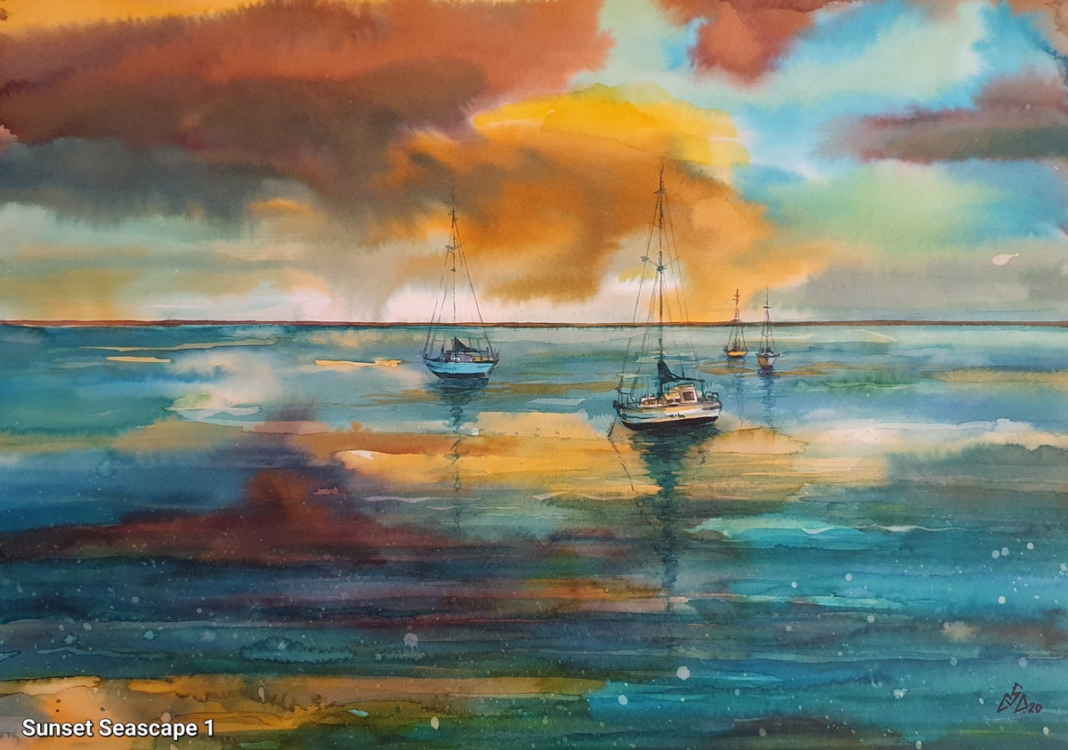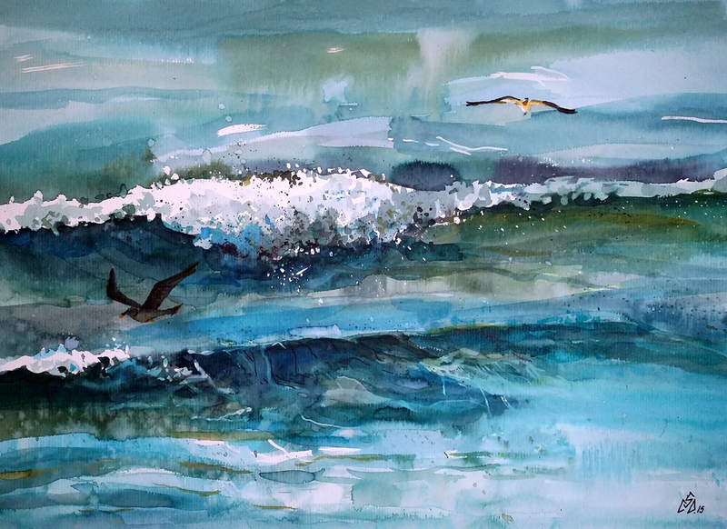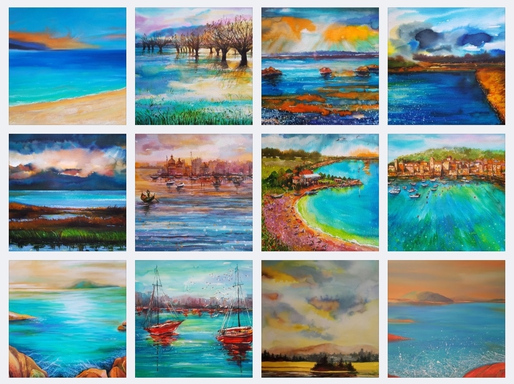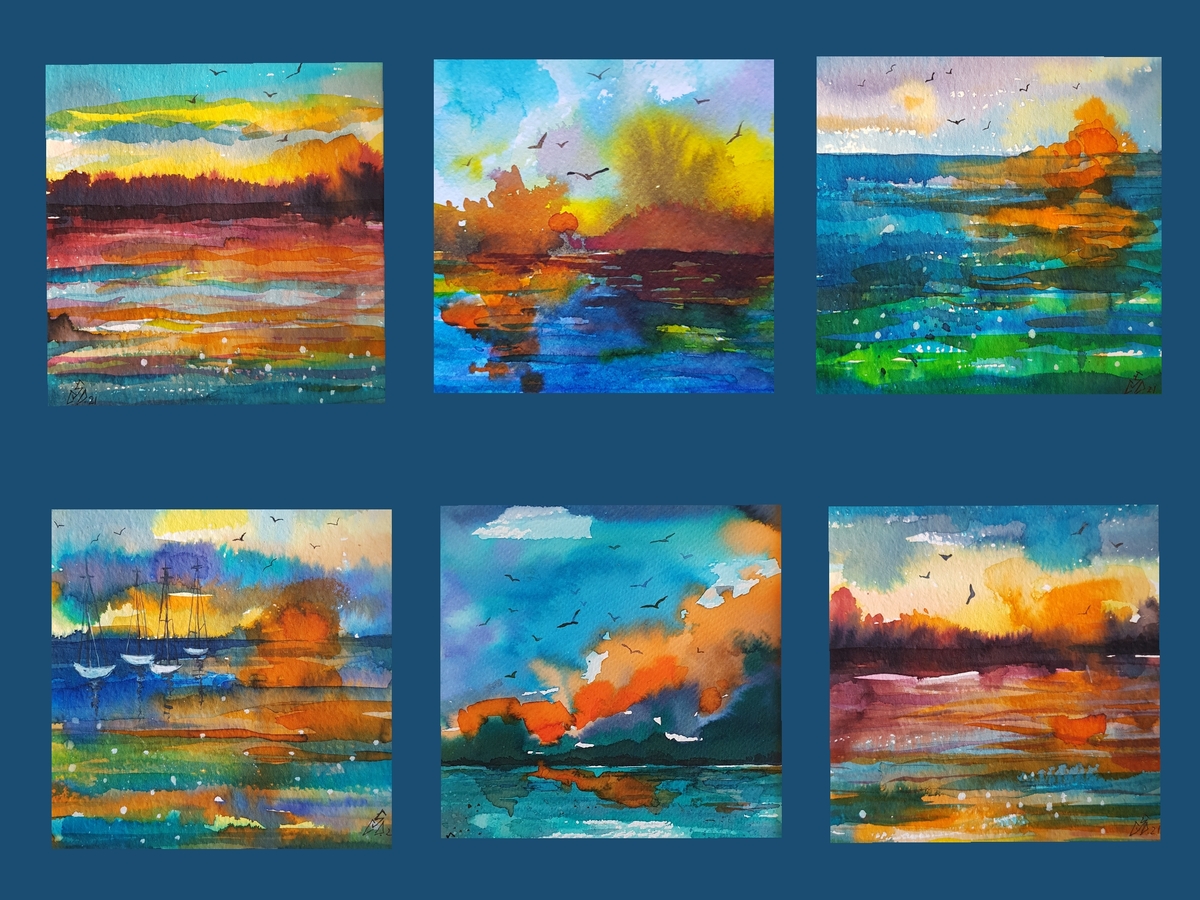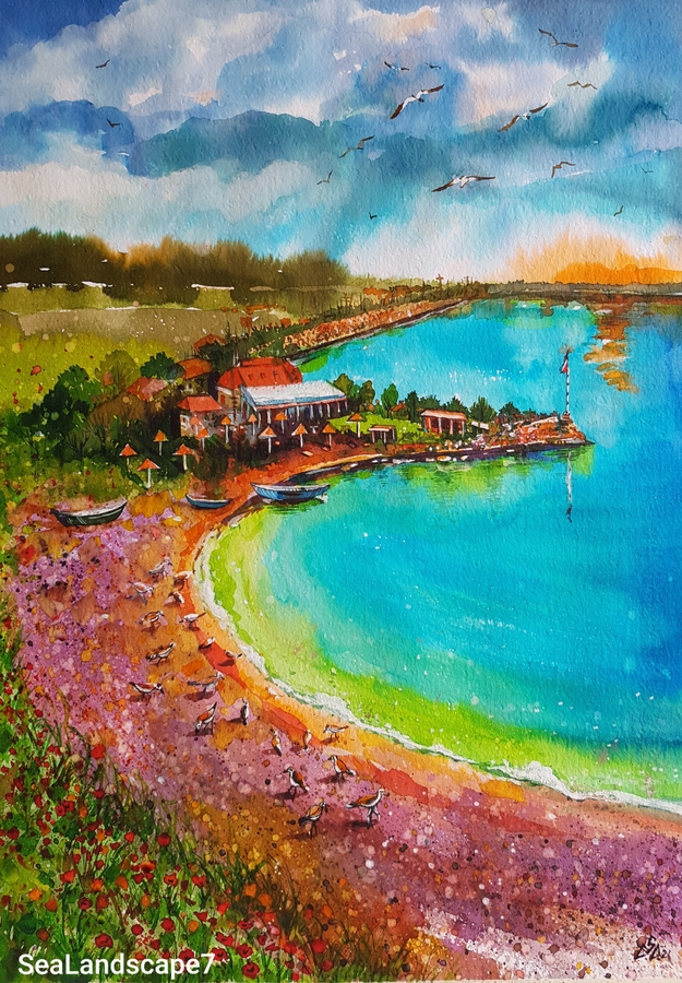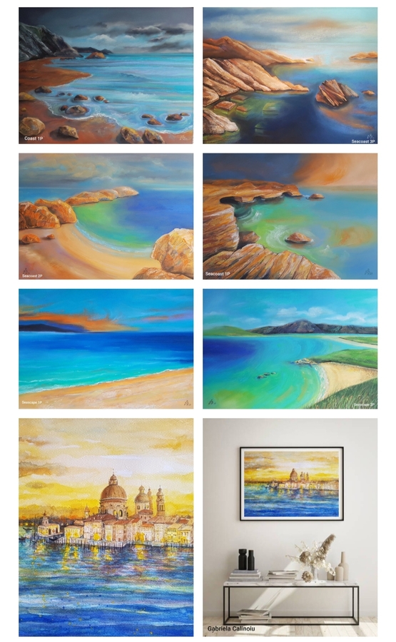 Picturi cu peisaje marine realizare in acuarela sau pastel.