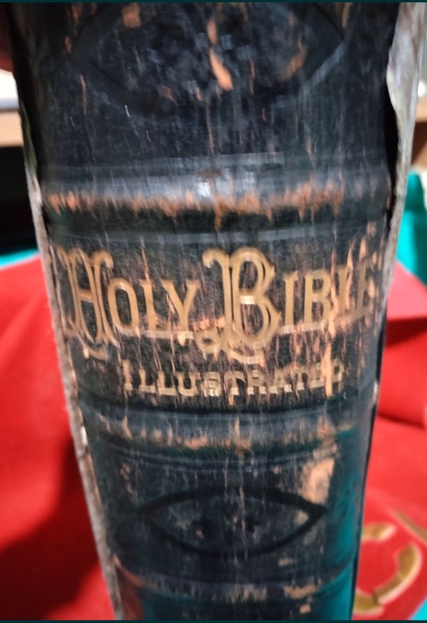 Copertile sunt desprinse partial datorita greutatii si dimensiunilor mari ale bibliei, se pot lipi usor, dar nu am dorit sa intervin, pentru ai pastra originalitatea.
